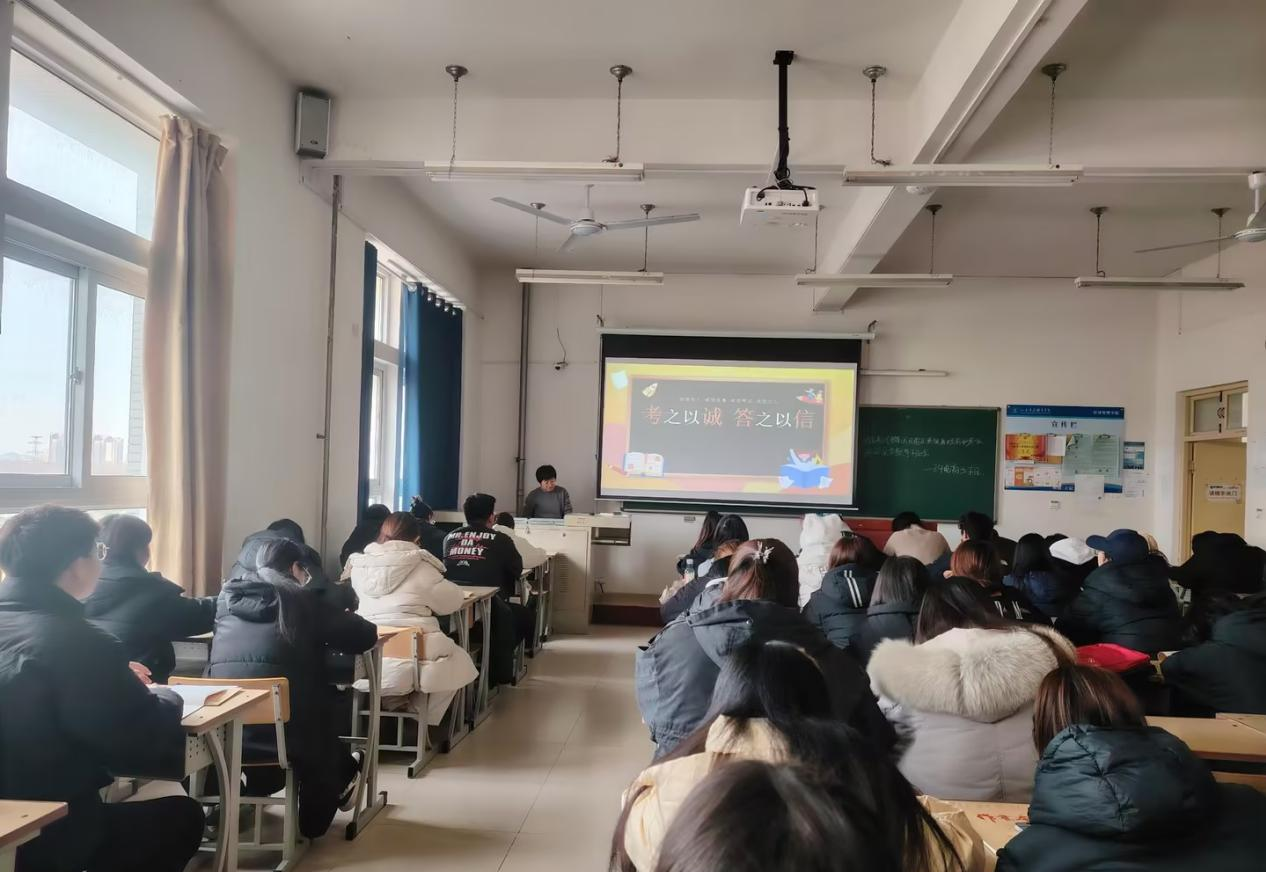 开展诚信考试主题班会,班主任老师详细阐述了诚信考试对于个人学业成长和品德塑造的重要意义,列举了校内外因考试作弊而受到严肃处理的案例,让同学们深刻认识到作弊行为的严重后果。班主任老师还分享了高效复习方法和时间管理技巧,鼓励大家通过踏实努力取得真实成绩,培养诚信的珍贵品格。