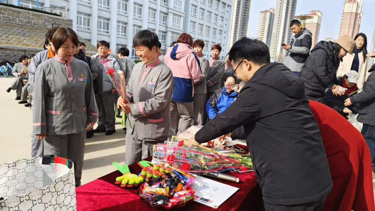 本站讯 3月7日上午,学生工作处公寓管理中心在德信社区笃行苑公寓楼外举办了第一届庆祝妇女节活动,公寓管理中心人员及物业所有女性工作人员参加了此次活动。