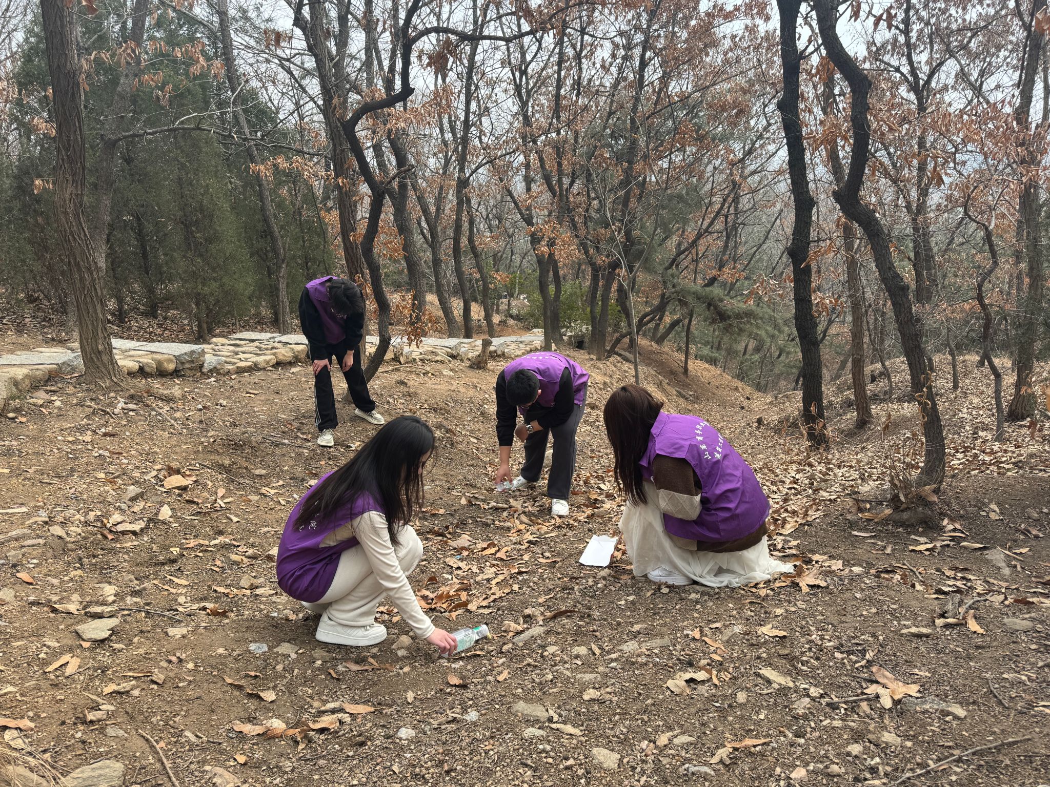 3月8日上午,墨色·青春志愿服务队一行来到烟台市凤凰山。尽管山间风景宜人,但隐匿在草丛、角落的垃圾却破坏了这份美好。志愿者们手持垃圾袋、垃圾夹,沿着蜿蜒的山路有序开展清理工作。大家分散开来,有的负责主干道清扫,有的深入树林搜寻隐蔽垃圾。“环保不是一句空话,而是实实在在的行动。”志愿者唐博文在劳动中感慨,“每一次弯腰捡起垃圾,都是在为守护自然出一份力。”经过数小时的努力,原本垃圾散落的山路焕然一新,志愿者们用汗水换来了山间的整洁与美丽。