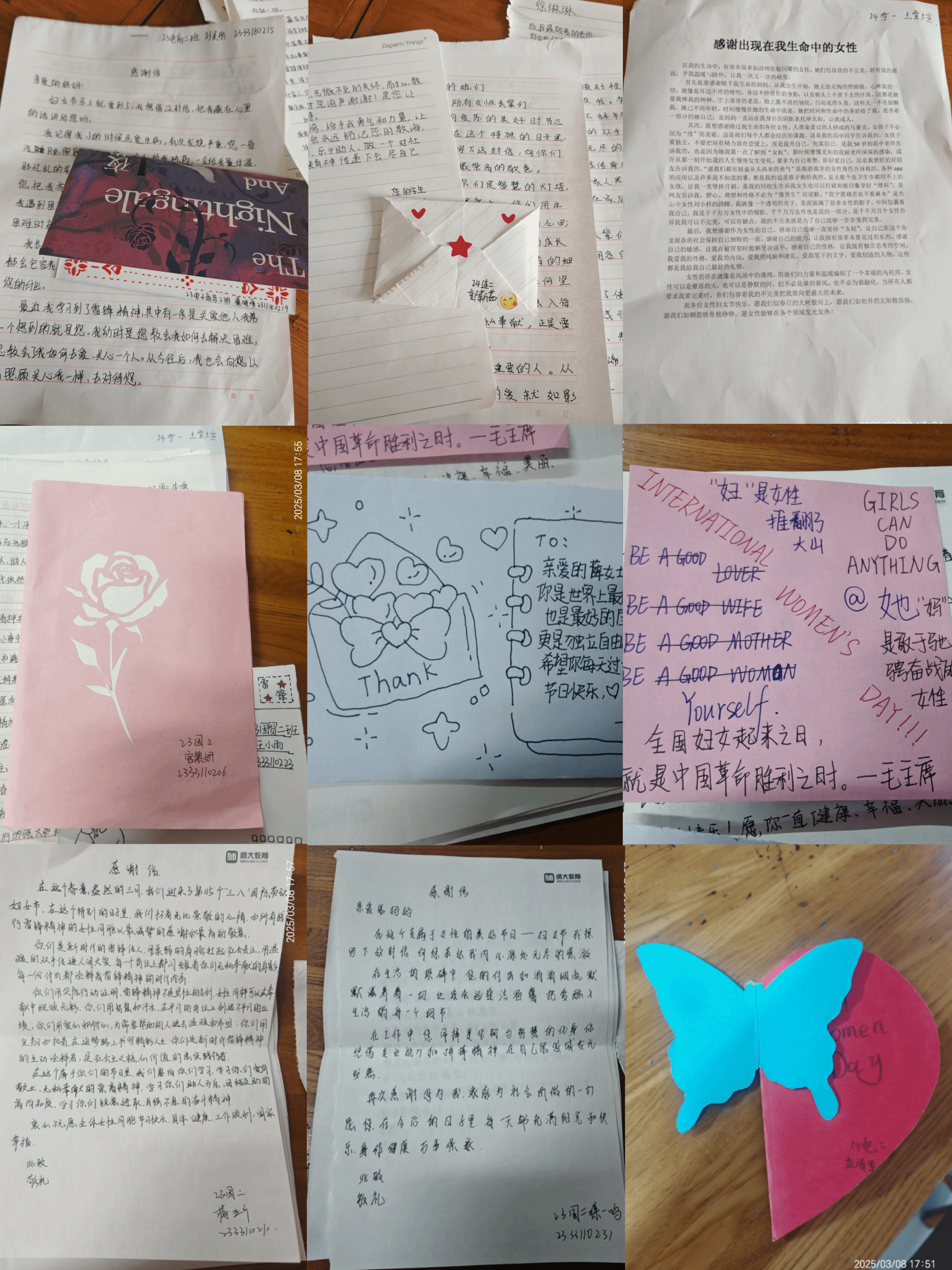 贺卡传递感恩之心。同学们通过为女教师、母亲、学校女教职工等女性长辈精心制作感恩卡片与感谢信,将满满的敬意与感激之情融入一笔一划中。一张张承载着深情的卡片,在传递温暖的同时,也让雷锋精神在细微处得以传承。