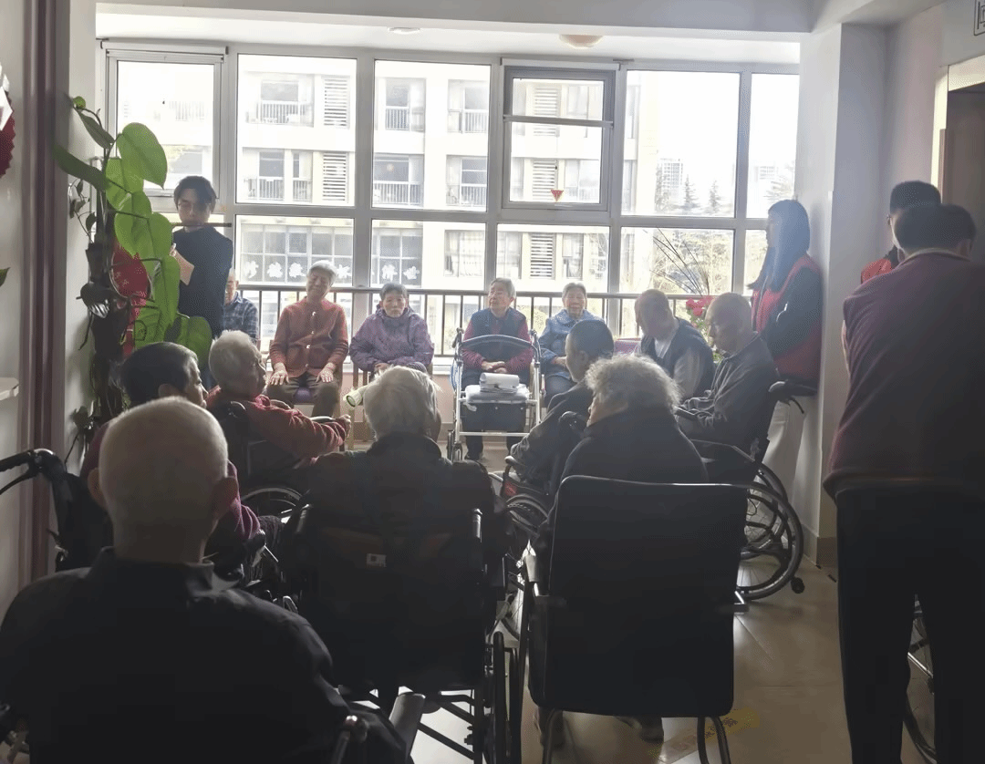 最后,同学们精心准备了各类节目,涵盖歌曲演唱、武术和乐器表演等多种形式。开场的双截棍表演瞬间感染了全场的气氛。随后,一首首经典老歌响起,熟悉的旋律让老人们情不自禁地跟着哼唱,沉浸在美好的回忆之中。