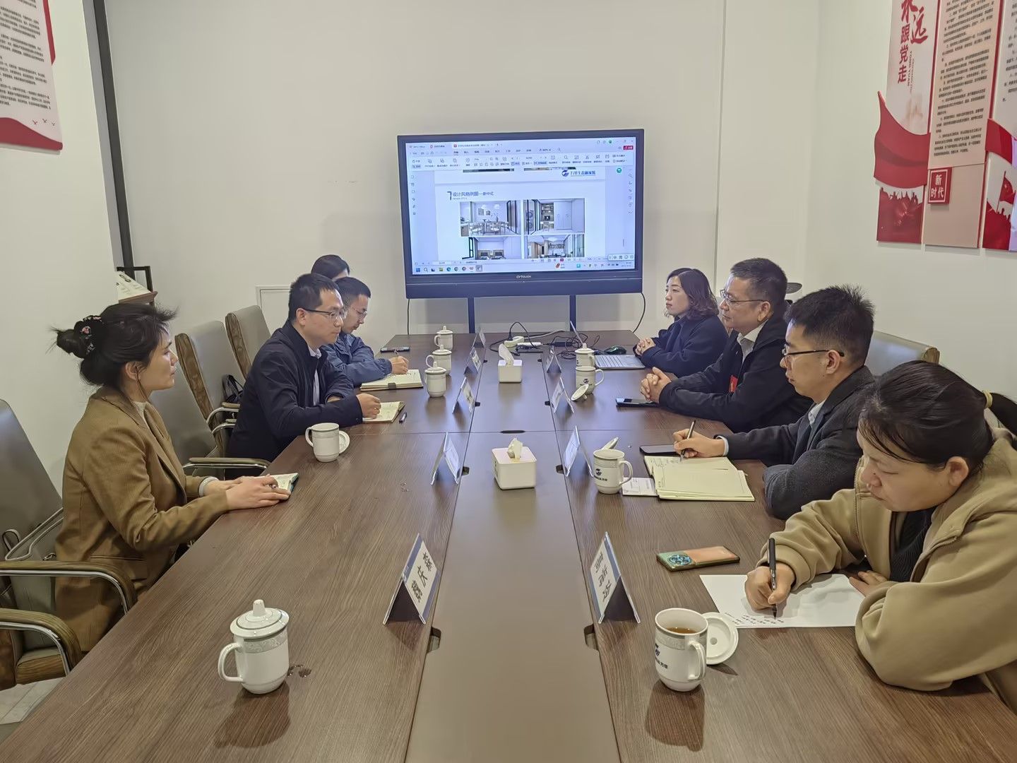 本站讯 3月25日,建筑工程学院副院长朱峰、周丹、陈楠带领专业团队赴万华生态司空新家装公司开展校企合作专项调研,围绕装配式装修产业升级与人才培养体系构建展开深度研讨。双方就产学研协同创新达成战略合作意向,重点在工业化内装技术研发、装配式施工标准制定、智能建造人才共育等领域形成合作框架。万华生态新家装产品总监班翊、山东区域负责人孙长冲率高层领导团队出席座谈。