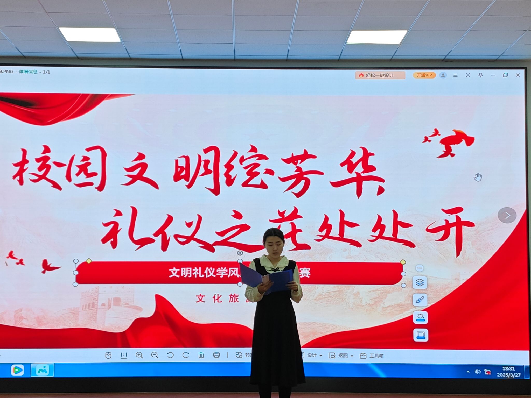 本站讯 为提升大学生文明素养,营造文明和谐的校园氛围,3月27日,文化旅游学院举办“校园文明绽芳华,礼仪之花处处开”文明礼仪演讲比赛。
