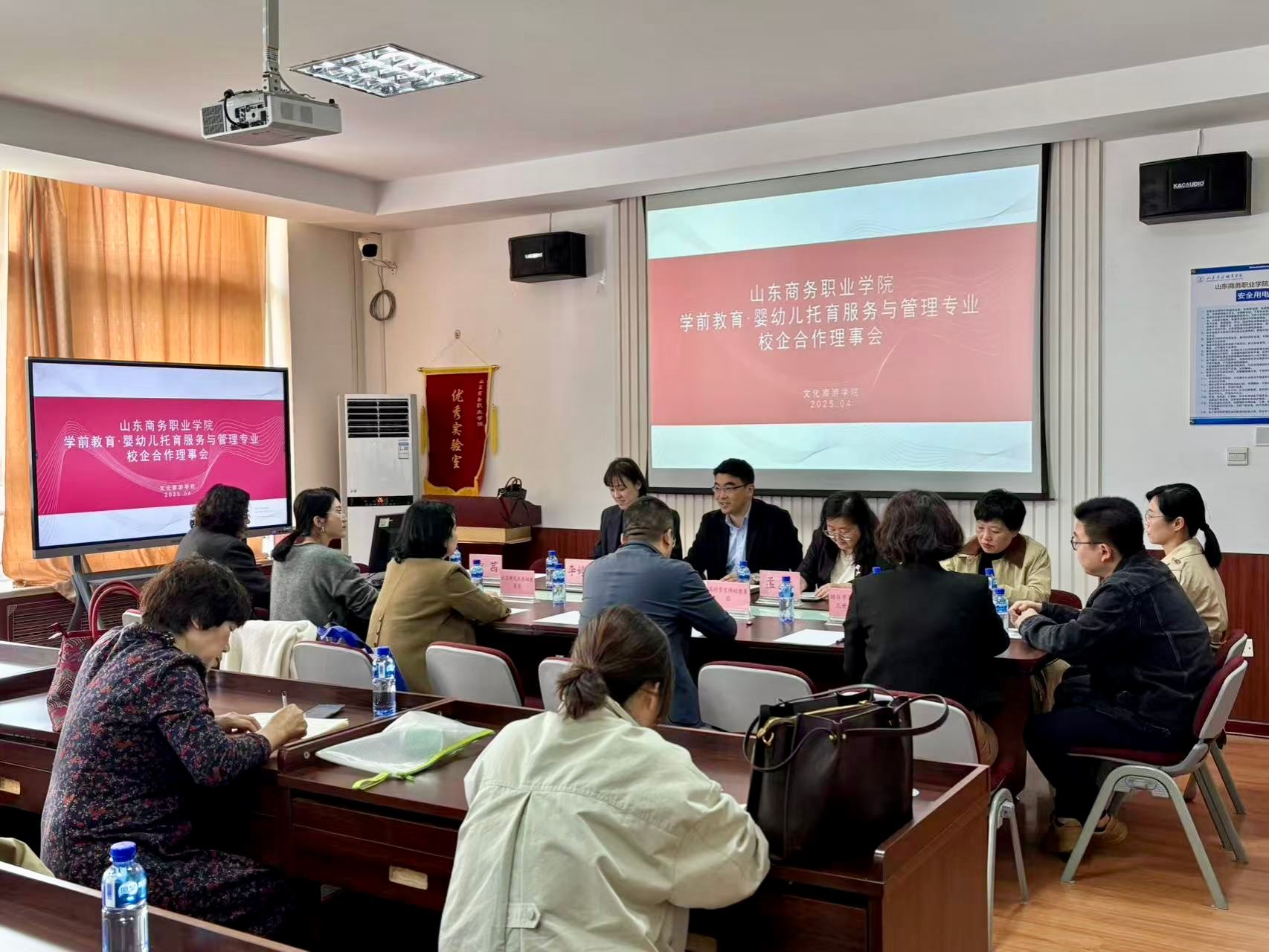 本站讯 4月22日上午,文化旅游学院学前教育·婴幼儿托育服务与管理专业院园合作理事会顺利召开。北京博苑未来幼教集团、烟台高新区童心学府幼儿园、滨州市京博幼教集团、烟台立德文化投资教育集团有限公司、威斯里安婴幼儿照护服务有限公司等17家行业领军企业代表,与学院相关领导、学前教育教研室教师齐聚一堂,围绕人才培养、产教融合、实训共建等议题展开深度交流,共绘人才培养新蓝图。