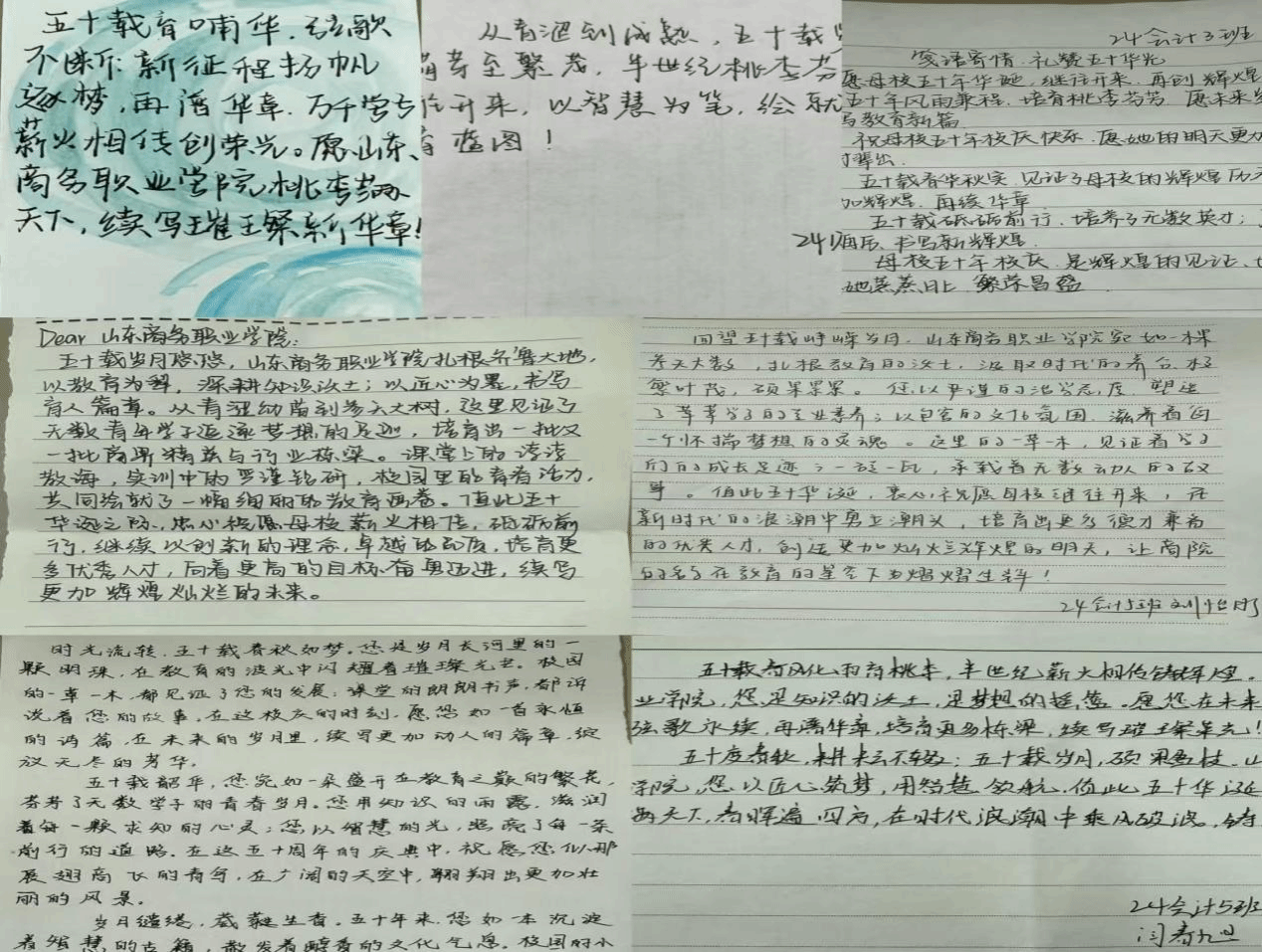 本站讯 在学校五十周年校庆来临之际,为弘扬爱校荣校精神,凝聚师生情谊,近期,会计金融学院举办“笺语寄情,礼赞五十华光”主题祝福语征集活动。本次活动以笔墨传情,以文字寄意,在校园内掀起了一股献礼校庆的热潮。