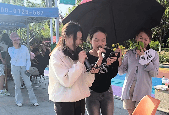 活动现场,学院特别邀请的乐队带来震撼的非洲鼓演奏,鼓点节奏明快、动感十足,瞬间点燃全场气氛。乐队成员还手把手教同学们击打非洲鼓,让大家沉浸式感受音乐的魅力与心灵释放的畅快。这场音乐盛宴吸引了全校师生驻足围观、踊跃参与,来自留学生学院的越南和老挝同学也被非洲鼓独特魅力吸引,热情投身其中,在欢快鼓点中实现跨文化的心灵交流。