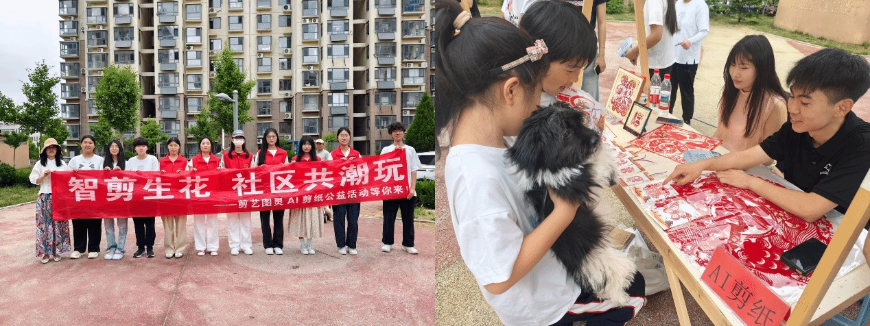 活动当日,党员教师与海兴社区工作人员携手合作,精心打造了一场融合科技助农、文化传承、便民服务于一体的“幸福集市”。学院“爱赶集”社会实践团队成为助农惠民的闪亮名片。他们精心布置的烟台栖霞肖家夼苹果、寓意吉祥的胶东花饽饽系列产品以及独具风味的烟台特色面点展台前人头攒动。团队成员热情邀请居民免费品尝,细致讲解产品背后的乡土故事与助农意义,以互联网思维拓宽特色农产品销路,助力乡村全面振兴。与此同时,“AI剪纸团队”也将传统剪纸艺术与现代技术相结合,展示了技术赋能下的剪纸产品。精美的剪纸作品栩栩如生,吸引众多居民驻足欣赏这一“指尖上的智慧”。