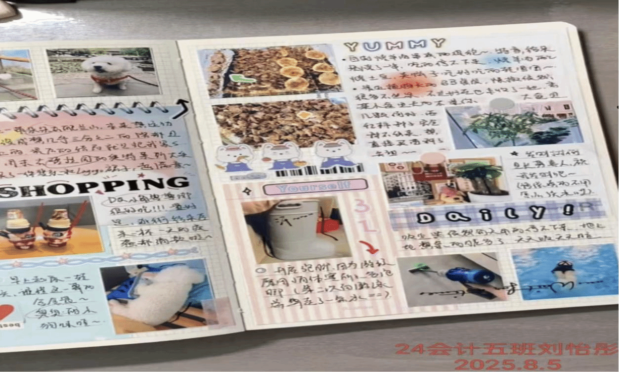 手帐拾光:笔尖下的情绪脉络与成长印记。“心迹手作·向阳而生”心理手帐活动鼓励学生以手帐为载体,记录日常琐碎与难忘时刻,通过文字、绘画与拼贴梳理情绪、规划生活。此次活动不仅让学生释放了压力,更在自我叙述中完成对生活的温柔复盘,让每一页手帐成为心灵向阳而生的见证。24会计5班刘怡彤表示:“用手帐记录生活的过程,像是给自己的心灵做了一次‘深呼吸’。看着满满一本的记录,突然觉得生活里藏着这么多值得珍惜的美好。”