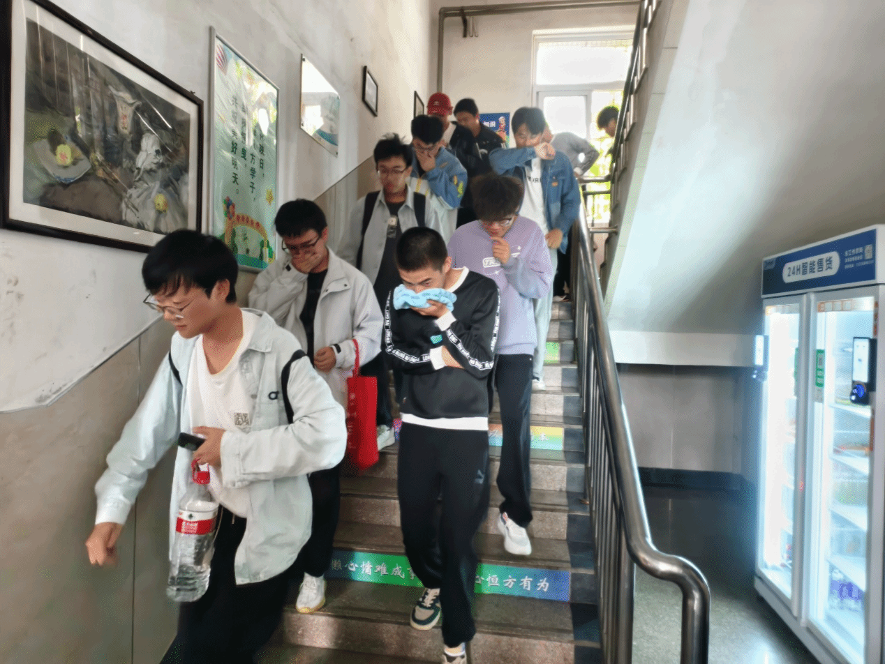 演练当天,学院根据制定的演练方案对师生进行了培训,随着警报声响起,师生迅速启动“湿毛巾捂口鼻、弯腰贴墙行进”标准动作,沿预定路线有序撤离。在疏导组工作人员的指引下,同学们有序地撤离到指定的安全地带。整个过程耗时三分钟,实现零踩踏、零滞留,师生安全撤离,展示了师生们在面对突发事件时的冷静与高效。