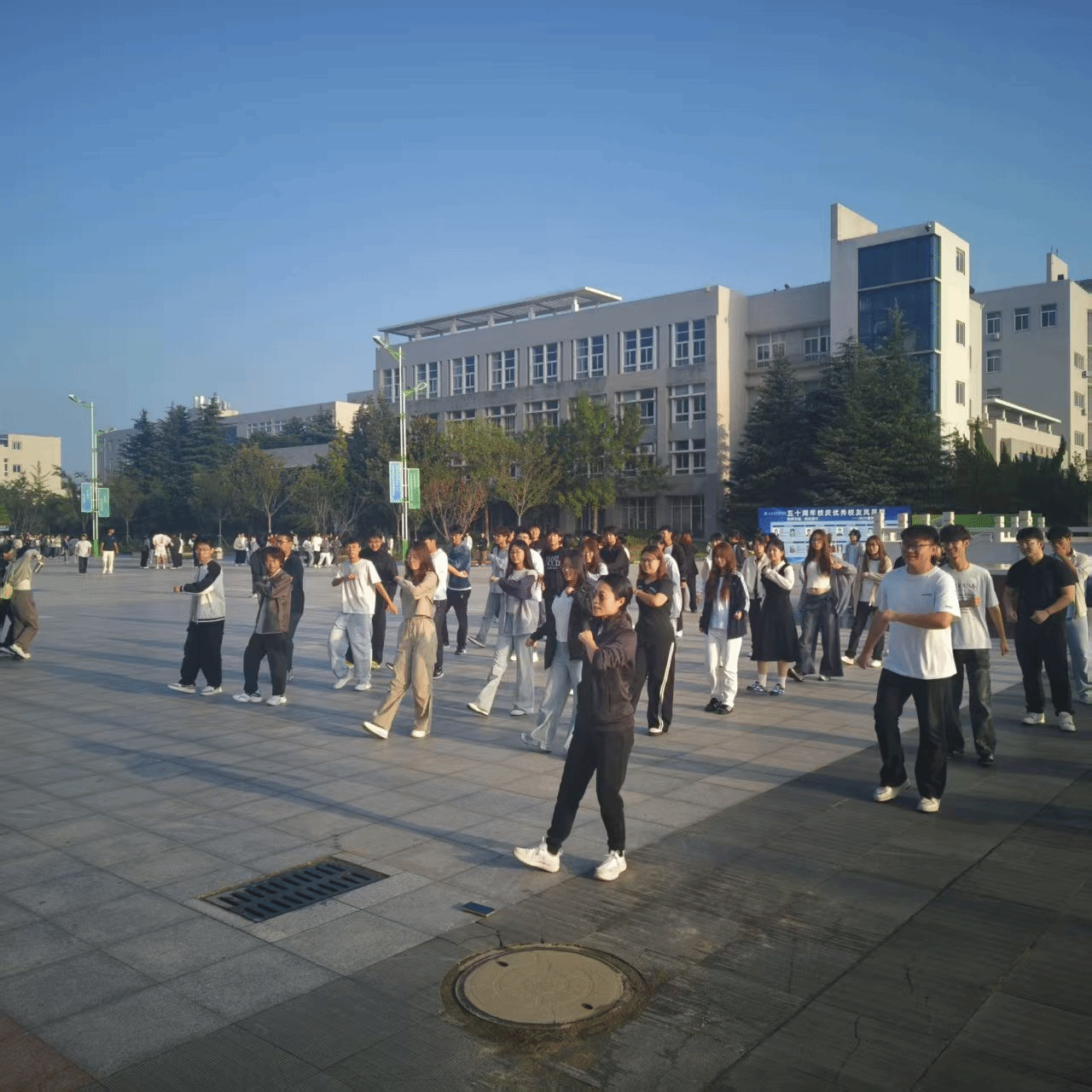 创新晨练形式,舞蹈增添活力。为提高学生的身体素质,充分调动学生的锻炼积极性,学院资助辅导员老师在早操晨练时间,带领大家学习有氧舞蹈。以往整齐划一的跑步方阵,升级为充满活力与节奏感的有氧舞蹈,同学们伴随着动感音乐,在晨光中舒展肢体、律动跳跃,开启元气满满的一天。