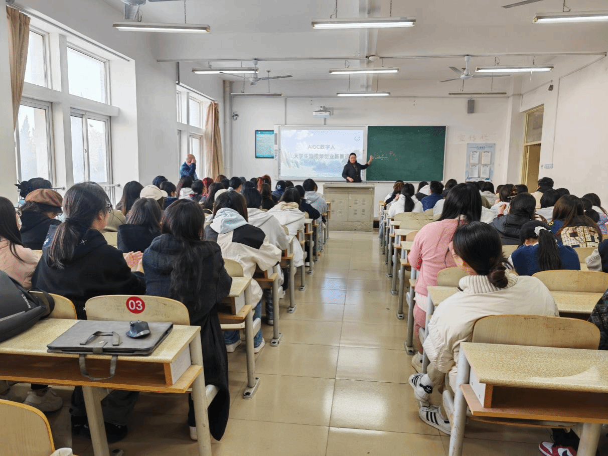 讲座伊始,田经理以“就业寒冬里的新增量”切入,用最新数据指出2025届高校毕业生规模将达1222万,传统行业岗位收缩,而人工智能、数字内容等新领域人才缺口年增25%以上。以“当会计遇见AI,不止做账,更能做‘数’!”田经理一句话点燃了同学们的兴趣。随后,她结合真实案例,展示“1分钟绿幕克隆形声”“大模型一键生成千言文案”“AI实时驱动直播”等零门槛创作玩法,聚焦AIGC数字人技术在短视频创业领域的应用,结合财会专业特色解析行业趋势与实操路径,为学生搭建起理论与实践对接的桥梁。