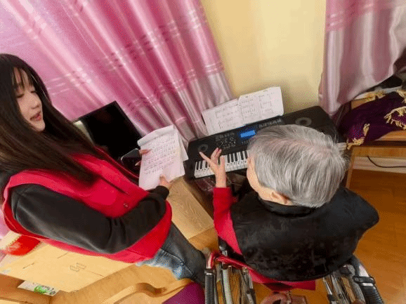活动筹备阶段,学院充分调研养老院需求,结合学生特长制定 “暖心陪伴 + 才艺展演 + 便民服务” 活动方案,提前组织学生学习老年沟通技巧、准备慰问物资。下午两点,学生们抵达养老院,在工作人员引导下分组行动,走进老人房间与活动区域,开展一对一暖心陪伴。有的坐在老人身边倾听过往故事,为老人梳理头发、修剪指甲;有的拿起扫帚、抹布,协助养老院打扫公共区域卫生;还有的手把手教老人使用智能手机拍照、视频通话,帮助老人与远方家人连线,使老人们感受到了专属关怀。
