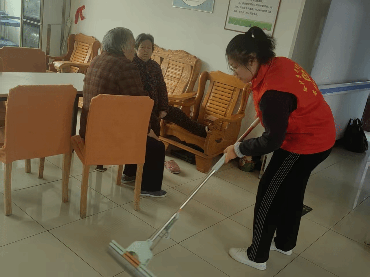 劳动教育践真知,环境美化显担当。在康养中心公寓内,志愿者们分组开展环境清洁与美化工作。有的学生为老人打扫卫生,优化居住舒适度;有的结合宿舍创意大赛经验,教老人用鞋盒制作分层收纳架,提升空间利用率;还有的细心修剪庭院绿植,为行动不便的老人开辟无障碍通道。经过3小时的劳动,房间焕然一新,养老院环境得到显著改善。