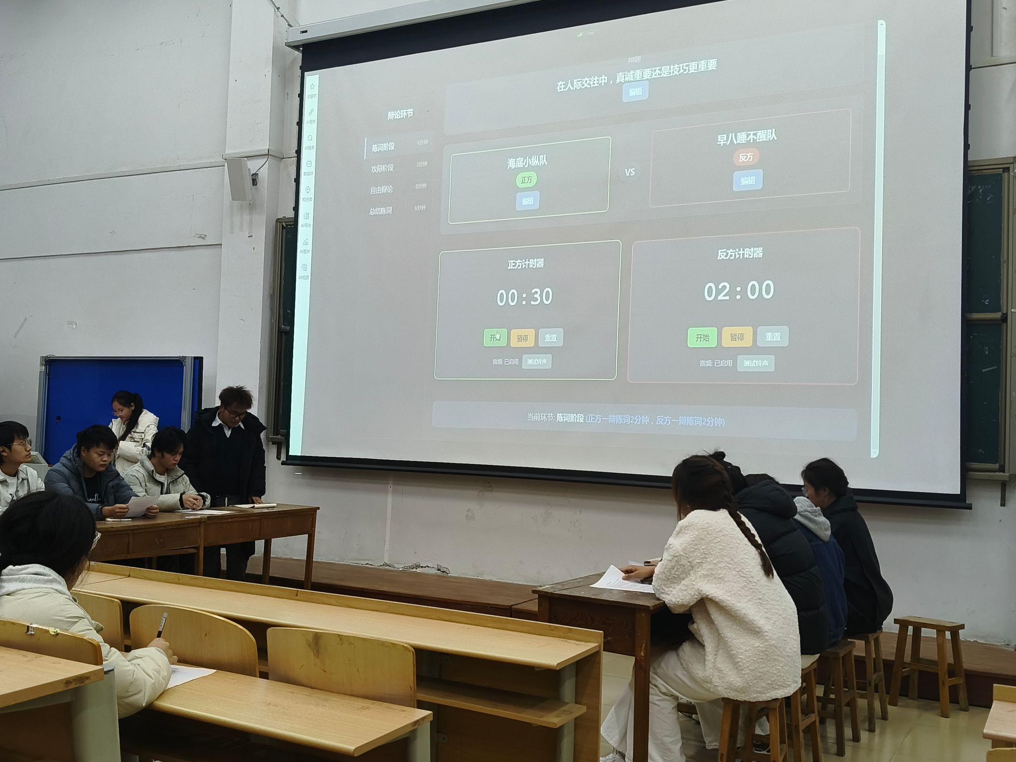 比赛筹备阶段,学院组织面试选拔人才。评委团围绕心理健康认知、临场反应、表达能力等维度,对报名学生进行综合考评。面试现场,学生们结合自身经历分享心理成长感悟,就“情绪管理”“人际关系”等话题各抒己见,最终36名优秀选手脱颖而出,组成8支辩论队晋级比赛。