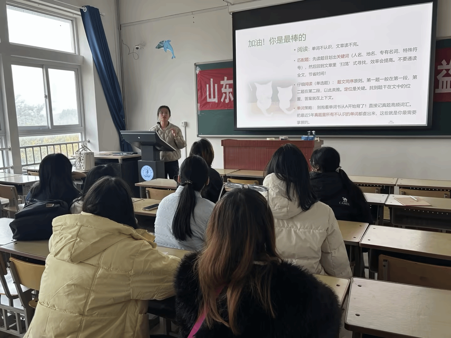 本次公益讲座的举办,充分体现了学院教师立德树人、服务学生的责任与担当,也为备战四级考试的学子们点亮了一盏明灯,指明了前行的方向。(通讯员:刘天晓 撰稿:王文娟 审核:孙序佑 梁倩 值班审核:杜林梓)