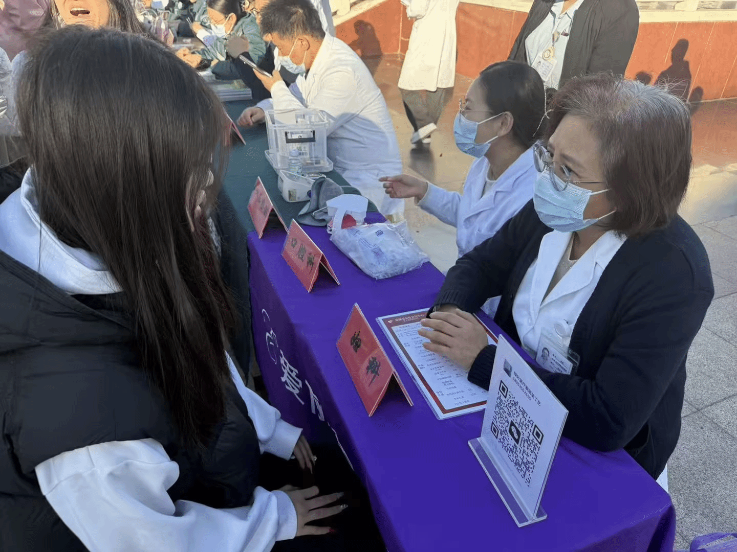 学院携手高新区卫健局,在国旗杆西侧搭起“临时健康站”。烟台山医院、高新区医院及社区卫生服务中心共13支团队轮番坐诊,中医、口腔、妇科、骨科“一站式”服务,血压血糖、心理评估、急救教学同步上线。专业医护人员现场示范心肺复苏与海姆立克,同学们排队实操,在“计时器”滴滴声中掌握救命技能,不出校门就收获满满“健康礼包”。