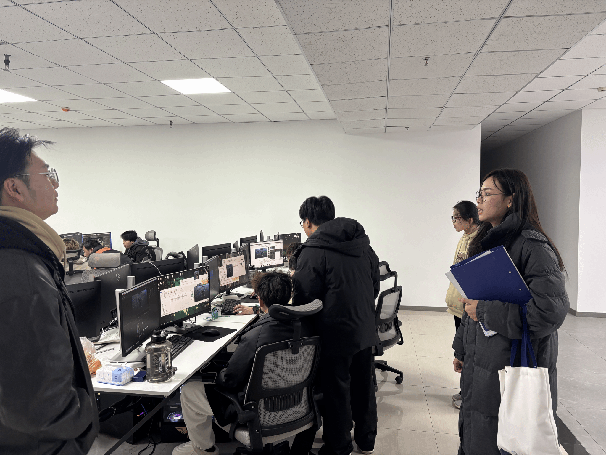 来到工作区,24、25级学生代表围绕职业发展关切问题展开踊跃提问,重点就企业日常工作生活细节与学长学姐深入交流。从住宿环境、餐饮保障等后勤服务,到上下班时间、薪酬福利等职业保障,往届学生结合自身经历逐一解答,用真实案例消除了新生对企业生活的陌生感。针对专业学习与工作实践衔接问题,双方聚焦番剧影视作品制作流程、主流软件应用技巧及渲染技术难点展开深度探讨。