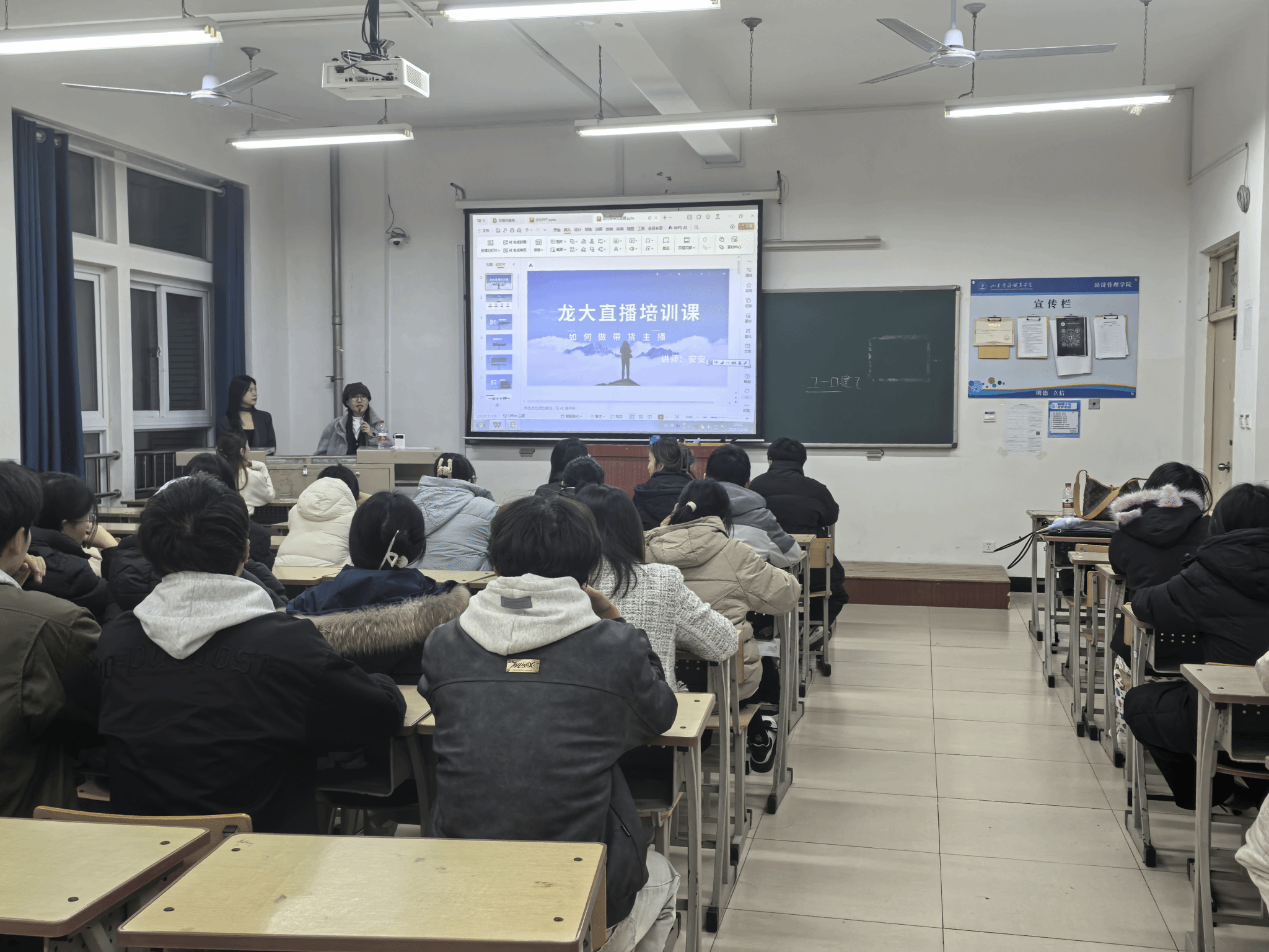 本站讯 为深化产教融合、创新实战化教学范式,经济管理学院电子商务专业与龙大商贸集团合作的“龙大直播项目”首阶段集中培训于11月20日顺利结束。在为期三天的系统培训中,企业导师团队走进校园,围绕产品知识、主播技能与镜头表达开展高强度、沉浸式教学,有效提升了学生的直播电商实操能力,标志着校企协同育人机制、共探直播电商教学创新方面取得实质性进展。
