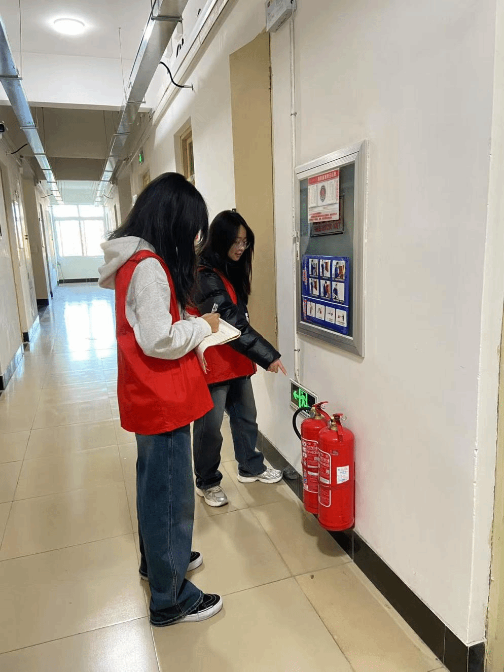 开展消防演练打通生命“逃生通道”。为检验和提升学生的应急避险能力,在学生社区组织开展消防应急疏散演练。随着警报拉响,学生们在辅导员和志愿者的指引下,用湿毛巾捂住口鼻,弯腰低姿,沿着预定路线快速、有序地撤离至安全地带。整个过程紧张有序、配合默契。演练结束后,现场讲解了灭火器的正确使用方法,让同学们从“知”到“行”,真正掌握初起火灾的扑救技能。