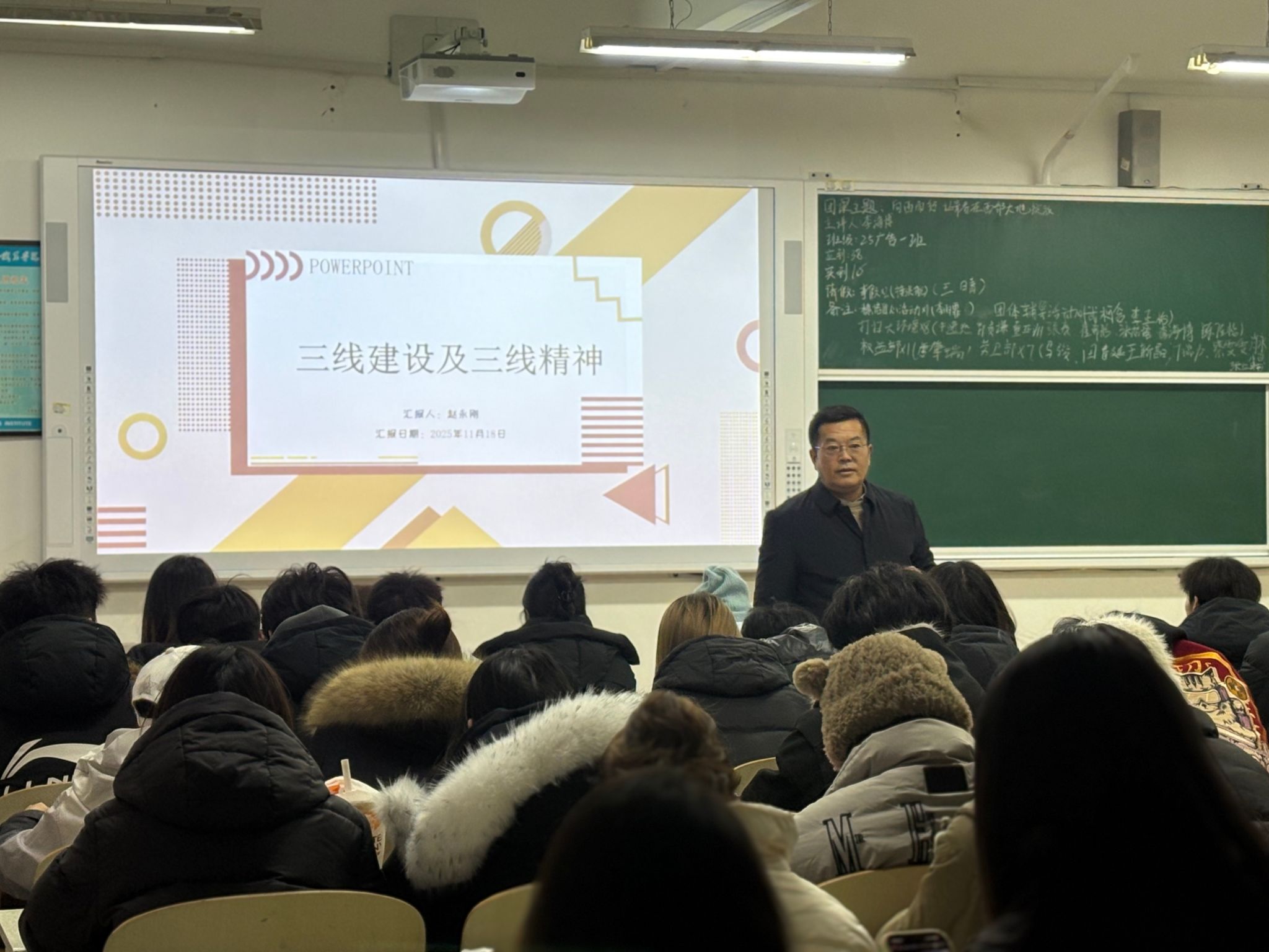 本站讯 为深入学习中国共产党人精神谱系,弘扬“艰苦创业、无私奉献、团结协作、勇于创新”的三线精神,重温那段激情燃烧的岁月,11月21日下午,艺术设计学院党总支书记赵永刚以“铭记三线岁月,传承三线精神”为主题,为学生讲授了一堂生动而深刻的思政课。