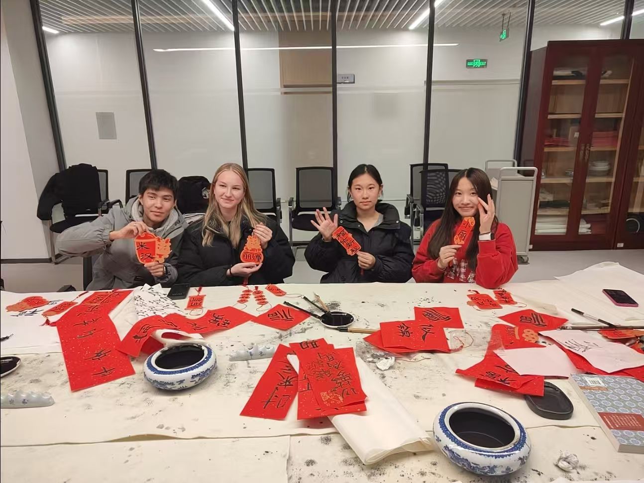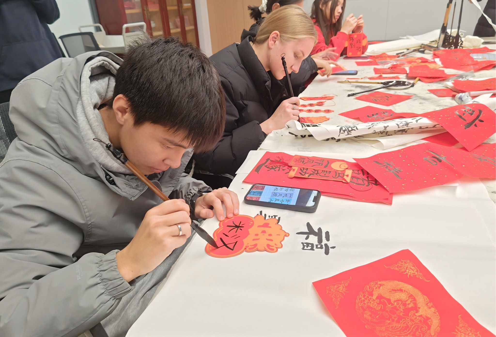 活动现场还特别设置了创作分享区,留学生们将临摹的作品与自己的中文名作一同展示,并与中国学生互赠书法作品作为纪念。此次“冬窗研墨”书法交流会不仅让留学生们体验了中国书法的笔墨意趣,更在横竖撇捺间编织起理解与友谊的纽带。