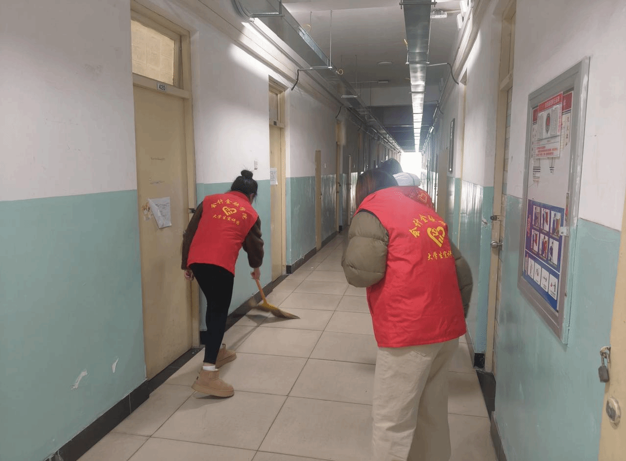 受助学生以志愿服务传递温暖。在学院组织下,本学年受助群体主动参与宿舍楼道深度清洁、捐赠书籍分类整理等工作。他们分工协作,对公共区域进行全面清扫,有的清扫地面垃圾,有的擦拭扶手栏杆,有的整理楼道内的闲置物品,不放过任何一个卫生死角。活动现场,学生们还用便签写下对学长学姐的感谢,贴在爱心驿站的留言墙上。一张张便签汇聚成感恩的海洋,彰显出学生从“受助者”向“助力者”的角色转化。