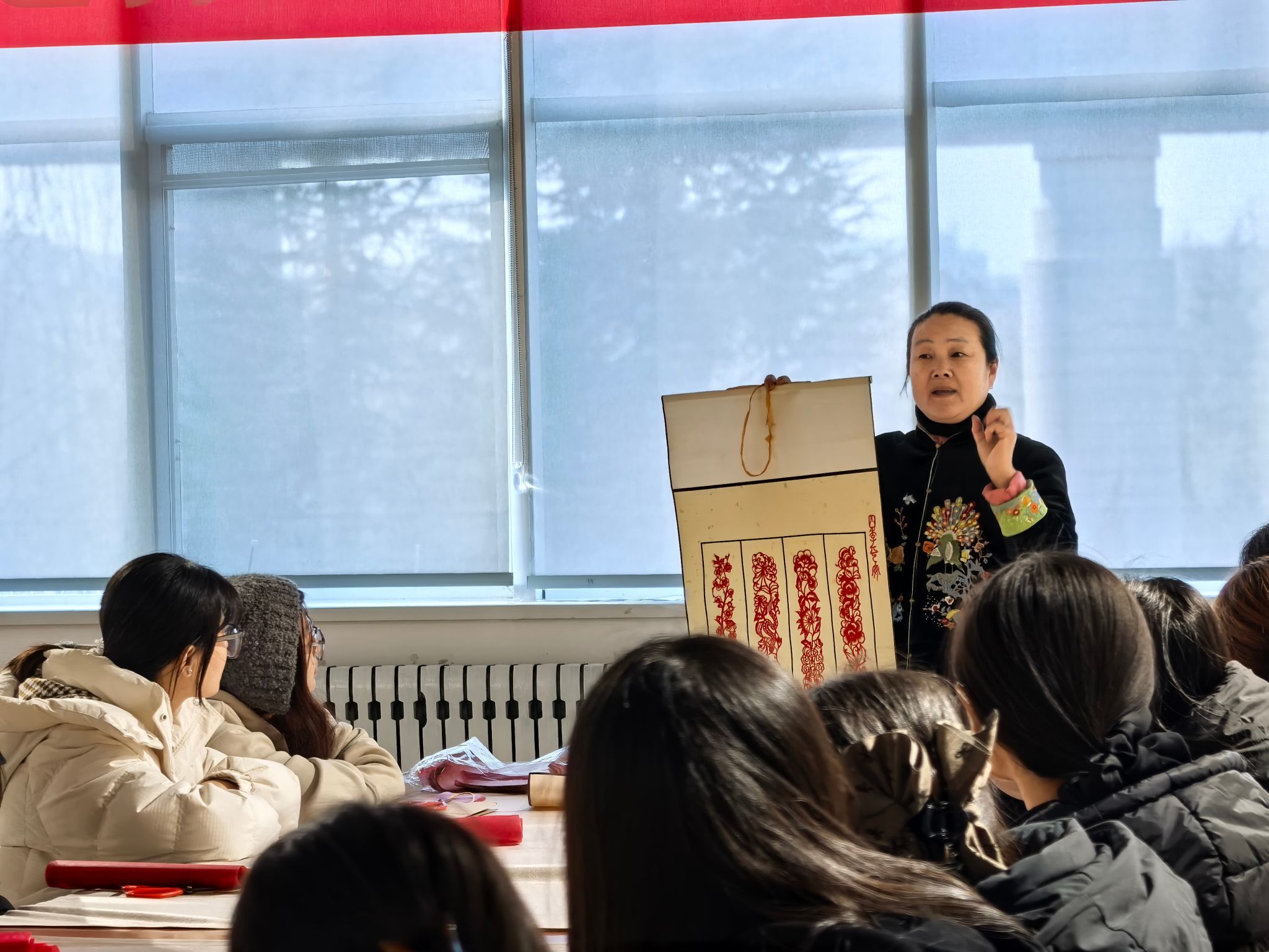 本站讯 为弘扬中华优秀传统文化,丰富校园文化生活,让师生近距离感受非物质文化遗产的独特魅力,12月16日下午,学校图书馆在文化展厅举办“非遗剪纸进校园”文化体验活动。本次活动特邀莱山区非物质文化遗产——莱山剪纸非遗传承人李凌老师亲临现场,带领同学们走进剪纸艺术的世界,于方寸红纸间领略匠心之美,体悟文化传承。