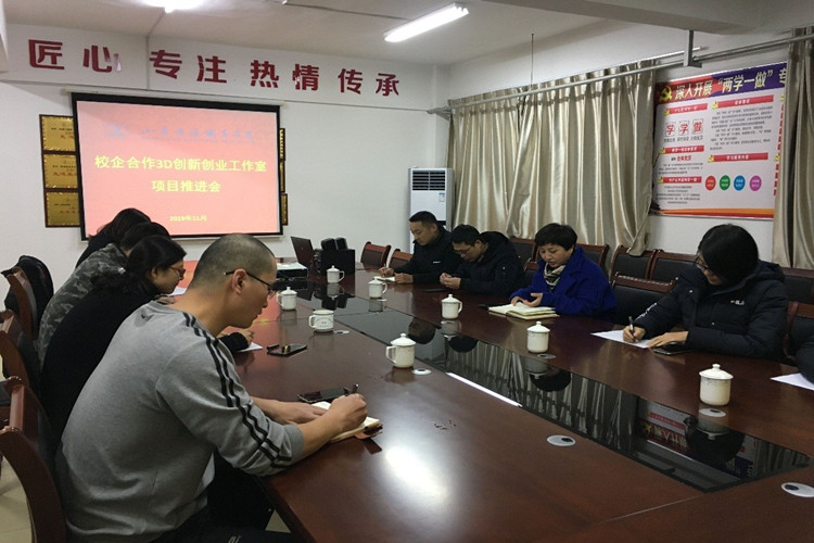本站讯 11月18日下午,依托智能制造传承创新平台,机电工程系与烟台胜信数字科技股份有限公司召开校企合作3D创新创业工作室项目推进会。本次会议围绕项目化课程体系建设、实训实践课程资源开发、创新型技术技能人才培养定位以及师资培训考核等教育教学内容进行了深入探讨。