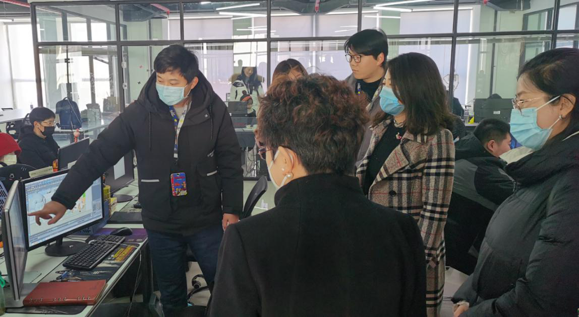 范彩荣处长一行受到山东松昂信息技术有限公司CEO洪德伟、运营总监张美玉等公司主要负责人的热情接待,张美玉总监带领调研团队参观了公司的各个制作部门,通过听取现场介绍、询问交流等形式,详细了解了公司整体发展情况及各部门运营机制。