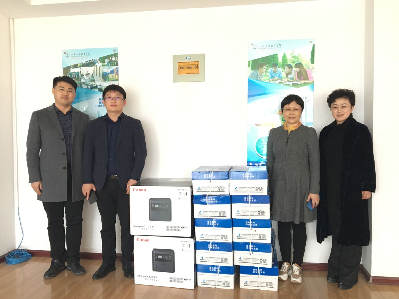 本站讯 3月25日下午,新科程教育科技集团有限公司为我校信息工程学院、艺术设计学院、继续教育学院捐赠了打印机、打印纸等价值10000余元的助学物资,相关部门领导出席捐赠仪式,对新课程教育科技集团的善举表达了衷心的感谢,并表示一定将这批信息化设备及办公用品用到实处。