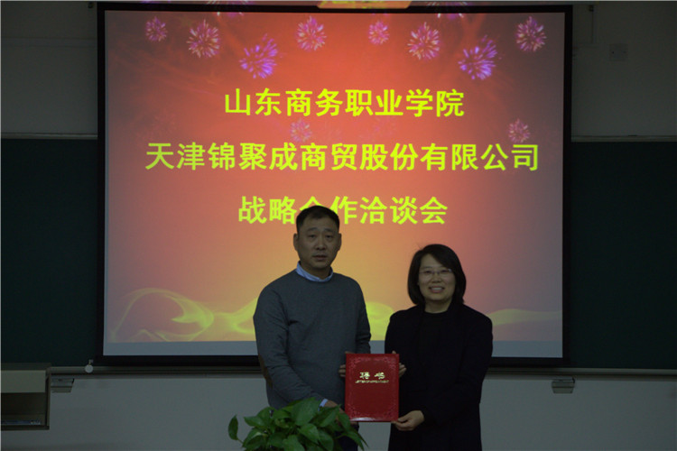 本站讯 1月4日下午,经济管理系与天津锦聚成商贸股份有限公司在一体化教学楼A311举行了战略合作洽谈会。天津锦聚成商贸股份有限公司董事长苑双庆及公司高管、经管管理系主任于邢香、副主任刘景光以及部分教师代表参加会议。校企双方就建立全面战略合作伙伴事宜进行了深入的沟通和交流,会议由经济管理系主任于邢香主持。