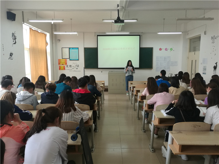 本站讯 5月15日下午15:30会计系校企合作订单班“烟台国际订单班”开班仪式在1A308举行。烟台国际合作集团境外就业推进中心李俊潭主任、陈豪助理,会计系校企合作负责人,订单班全体学员出席了此次仪式。