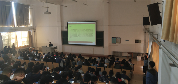 本站讯 10月26日下午,食品工程系邀请鲁粮集团来校为16级在校生做企业宣讲,宣讲会在二号教学楼第一阶梯教室举行。来自食品营养与检测、食品质量与安全、生物技术、粮食工程、粮油储藏与技术专业的400余名师生参加了此次宣讲会。