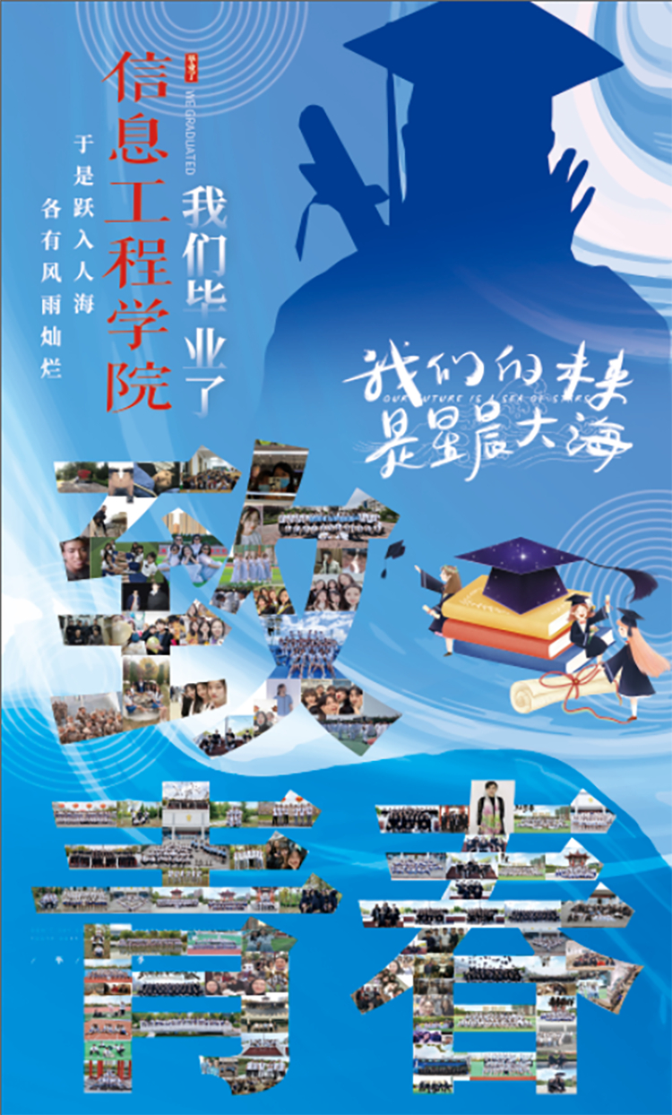 照片墙致青春。信息工程学院将2018级学生的毕业照和日常照片拼成了“致青春”三个大字,留住他们的美好时光,祝福他们在未来的人生道路上写下更加美好的篇章。