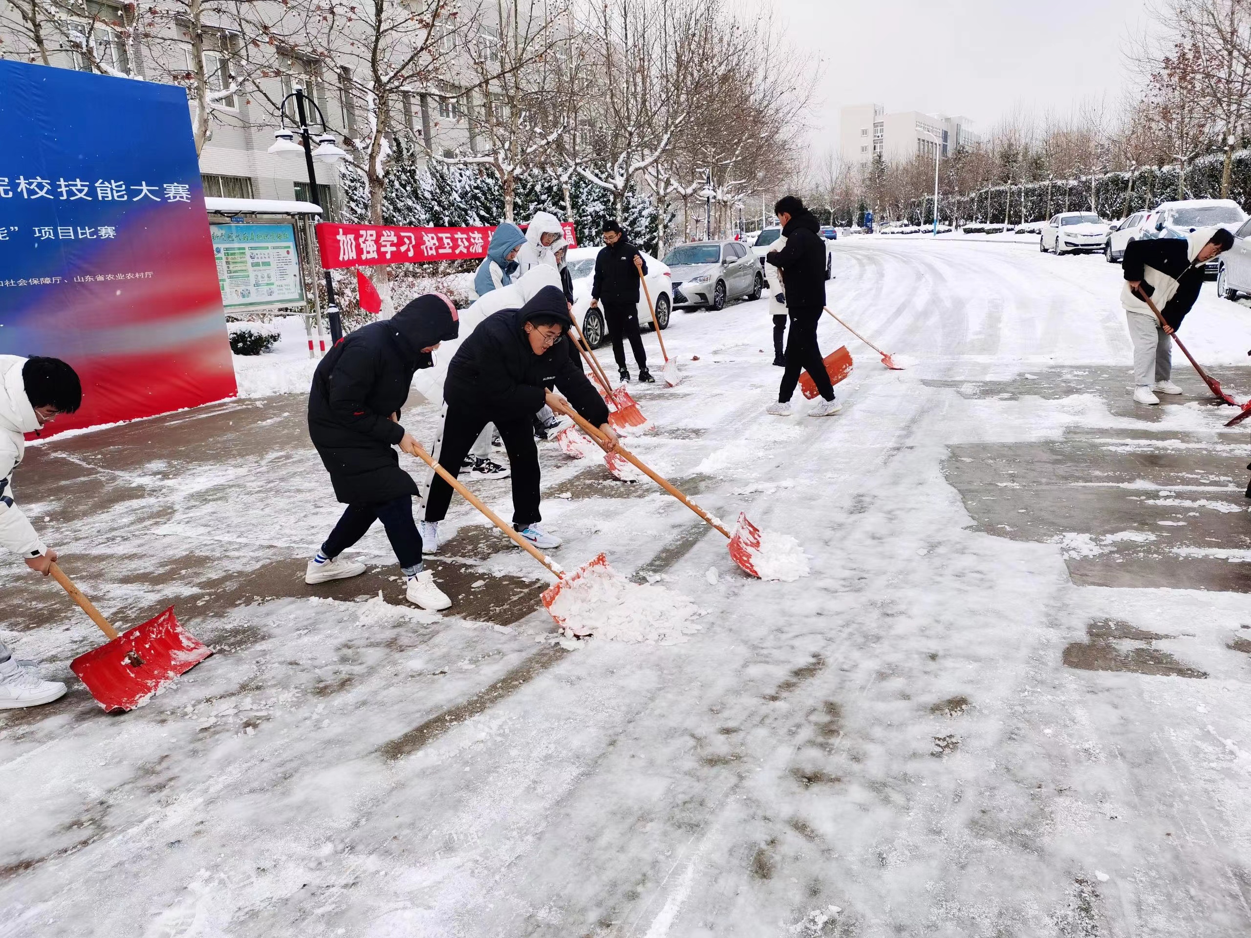 在学院老师的带领下,同学们积极参与,大家拿起铁锨、扫帚等工具对教学楼周围及主干道逐一进行清扫。大家不畏严寒,齐心协力,配合默契,经过一个多小时的奋战,主要路段的积雪基本清扫干净,确保了师生安全出行和正常的教学秩序。(通讯员:王晓怡 撰稿:田晓景 审核:杨建辉 梁倩 值班审核:成雪)