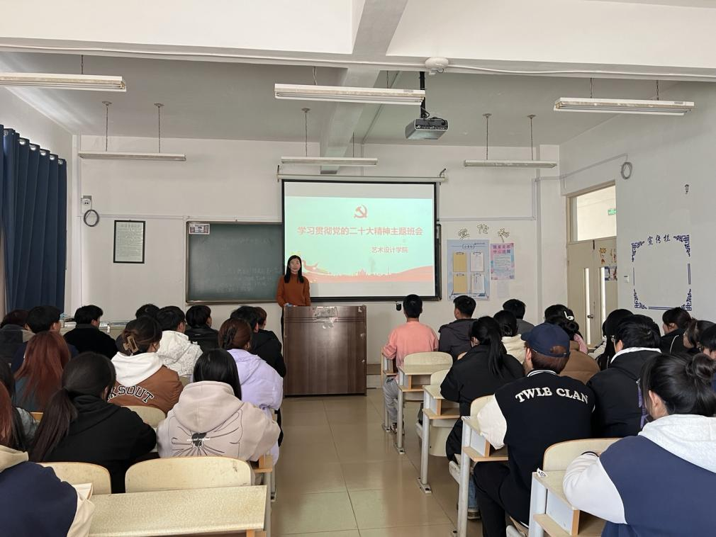 本站讯 为深入学习宣传贯彻党的二十大精神,高举中国特色社会主义伟大旗帜,全面贯彻新时代中国特色社会主义思想,弘扬伟大建党精神,11月15日,艺术设计学院把党的二十大精神融入班会主题教育,开展了以“学习二十大 奋进新征程”为主题的班会活动。