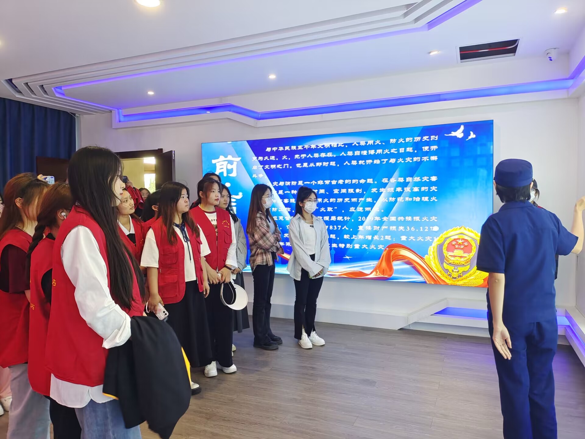 来到消防站,消防宣传员向同学们介绍了消防这一职业的历史由来、预防火灾的措施、消防法律法规等内容,围绕当前校园火灾特点和校园消防安全形势,列举了近期校园火灾事故案例,从认识火灾危害、做好火灾预防、排查火灾隐患等方面进行详细讲解,就如何报火警、火场自救及逃生方法等消防安全常识进行现场答疑。随后,消防宣传员带领学生们参观了消防车库,详细介绍了防护服装及随车装备器材的名称和用途,指导同学们学习穿戴消防服装,体验模拟消防。通过现场倾听、实地参观、亲身体验等多种方式使同学们更直观、更全面地了解消防知识,切实增强了同学们对消防安全的重视。