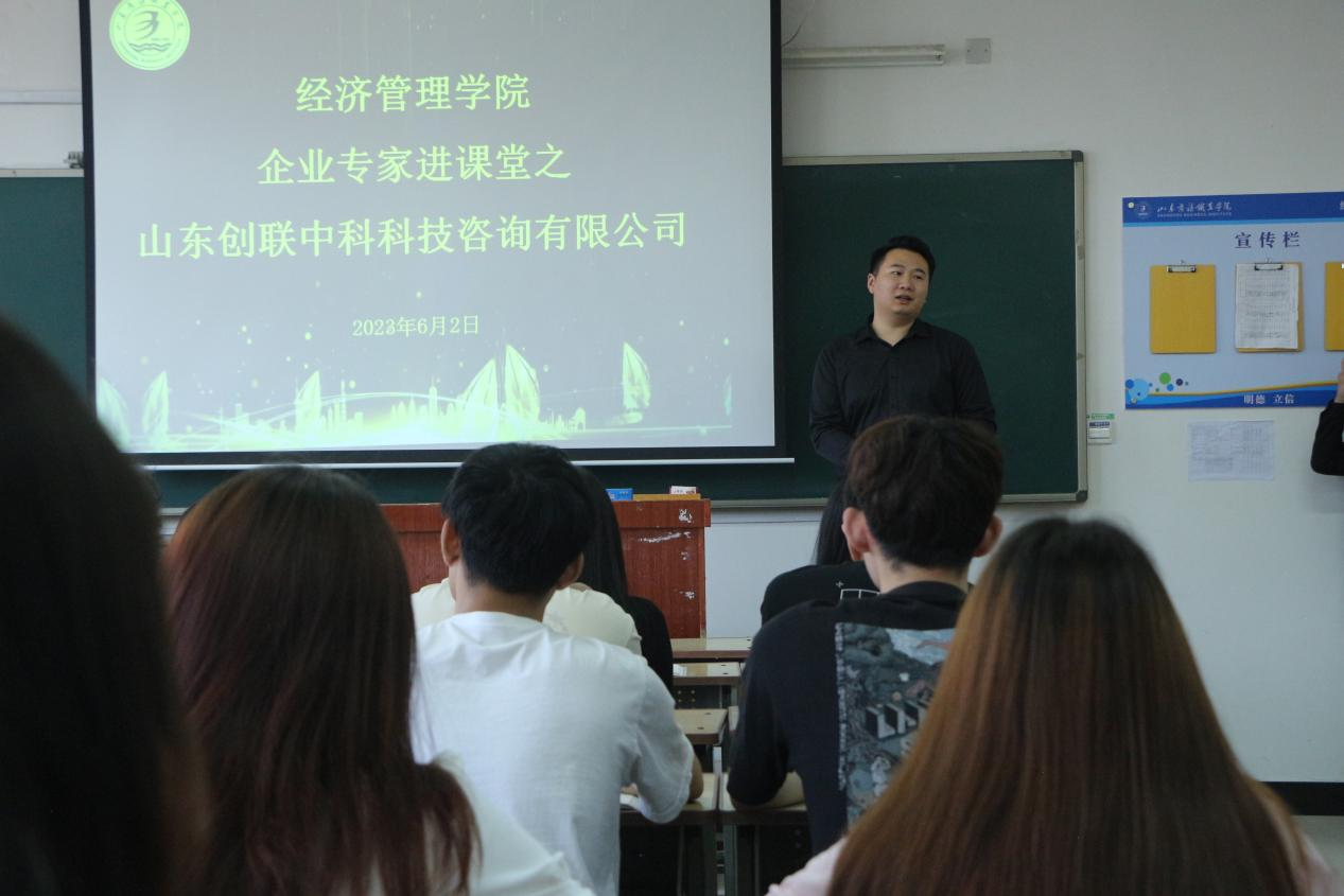 本站讯 为深化产教融合、校企合作,提高人才培养质量,经济管理学院积极探索校企“双导师”协同育人机制。秉承“请进来、走出去“的原则, 近日,经济管理学院连锁经营与管理专业邀请山东创联中科科技咨询有限公司总经理刘凯,参与到连锁专业核心课程《零售数字化营销》的课堂教学中,为 2021 级连锁经营与管理专业学生上了一节生动的“零售行业数字营销渠道拓展实践操作”课。