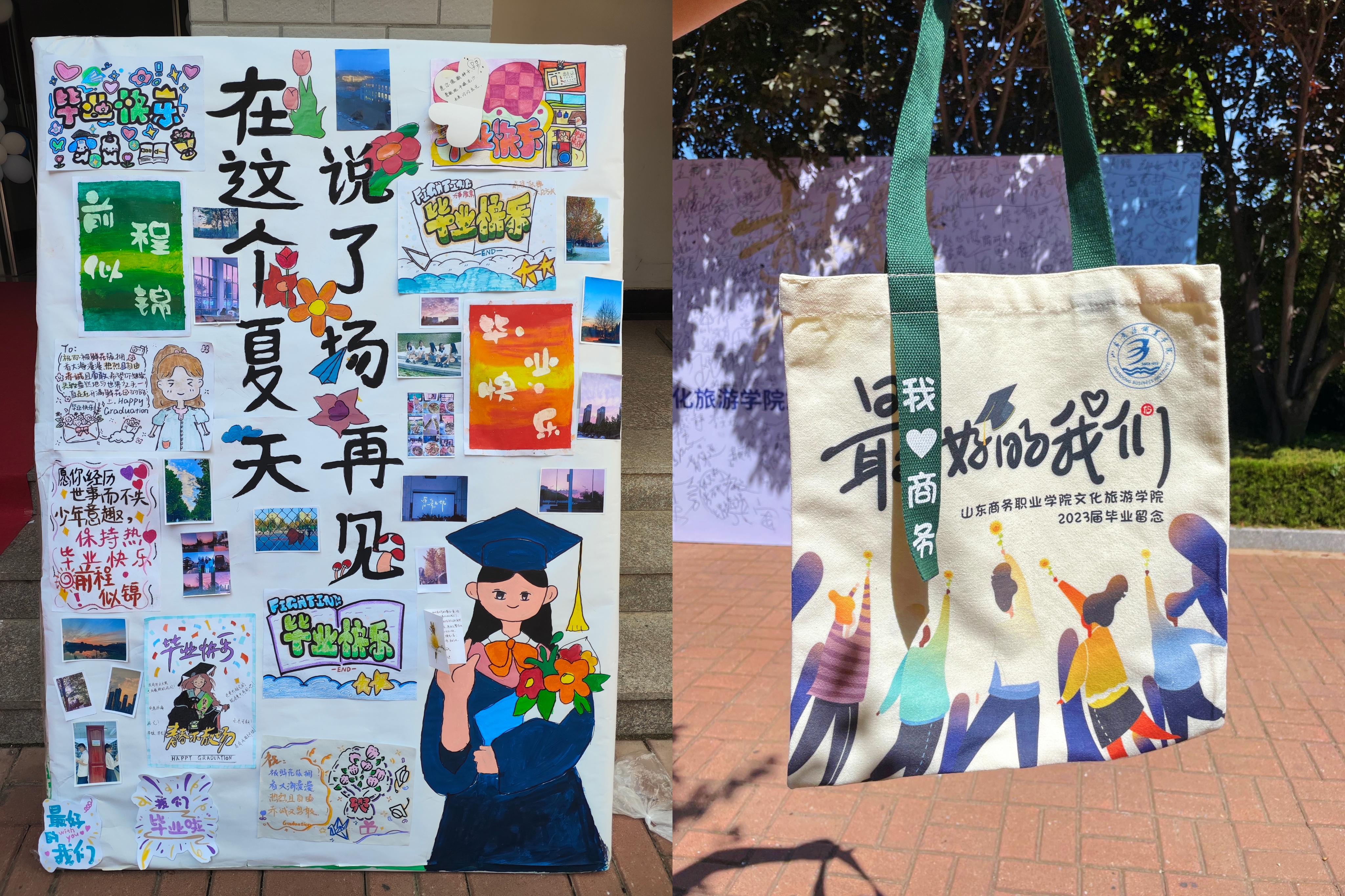 精彩活动,青春向未来。学院特别定制了2023届毕业生纪念品——“最好的我们”主题帆布袋,表达了对文旅学子最真挚的祝福。动感的舞蹈点燃了现场气氛,掌声不断;同学们纷纷来到“青春有梦·勇敢前行”毕业生签名墙签名拍照,表达了对母校的依恋和不舍。20级旅游管理专业李彩红同学说:“美好的大学时光转瞬即逝,但汗水、欢笑永远留在了青春记忆中,祝愿文旅2023届毕业生前程似锦,祝福母校再展宏图、再谱华章。”