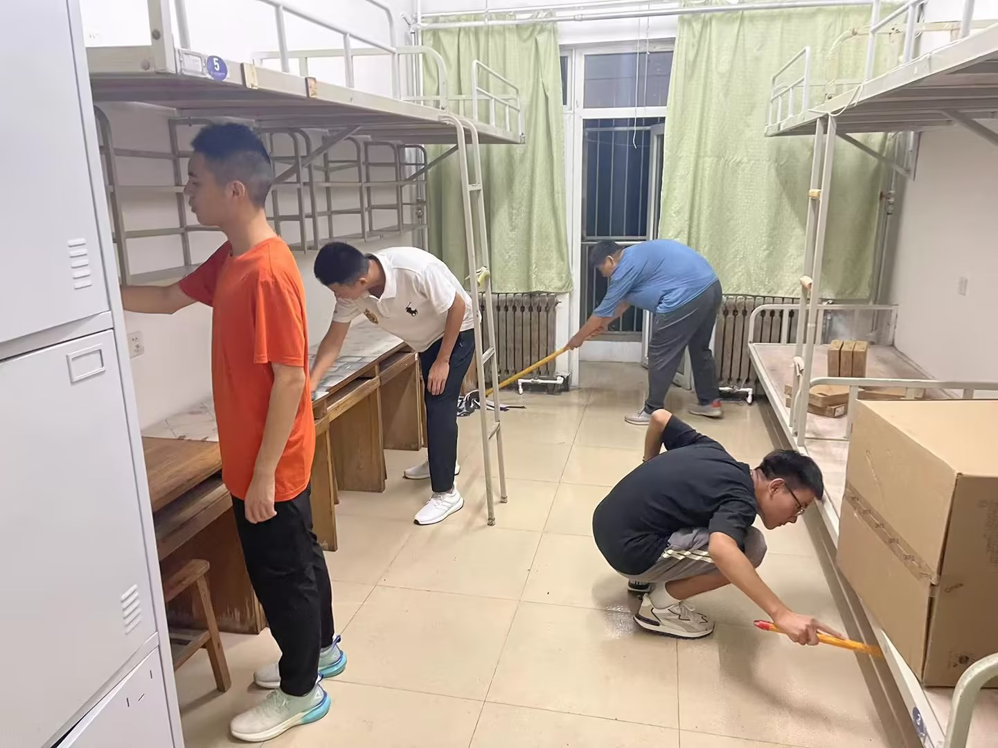 随后,老师和同学们一起对23级新生宿舍进行了清理,将房间各个角落进行了彻底清扫,对宿舍内外区域进行消毒,并对所有房间的物品进行清查、报修。