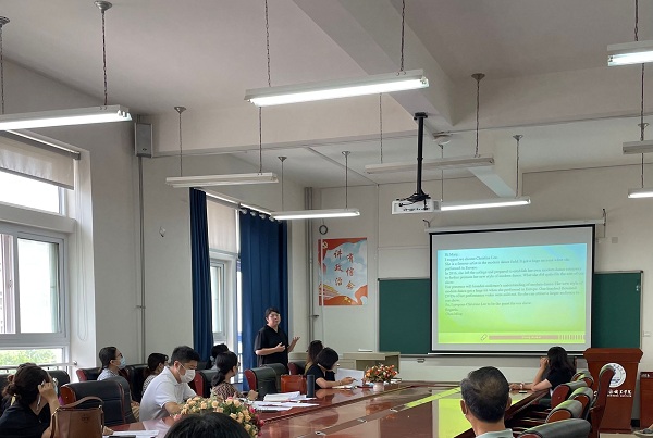 比赛结束后,评委们对本次比赛进行了点评。杜萍萍老师首先肯定了参赛教师们的辛勤付出。针对教学技能比赛的特点,指出青年教师在传统讲授法的基础上更应该开拓创新,积极思辨,灵活运用现代教学技术以更好实现贯彻从“教为中心”向以“学为中心”的教学主体转变,并从课程思政等多个方面分享了自己的经验,让在场的教师们受益匪浅。