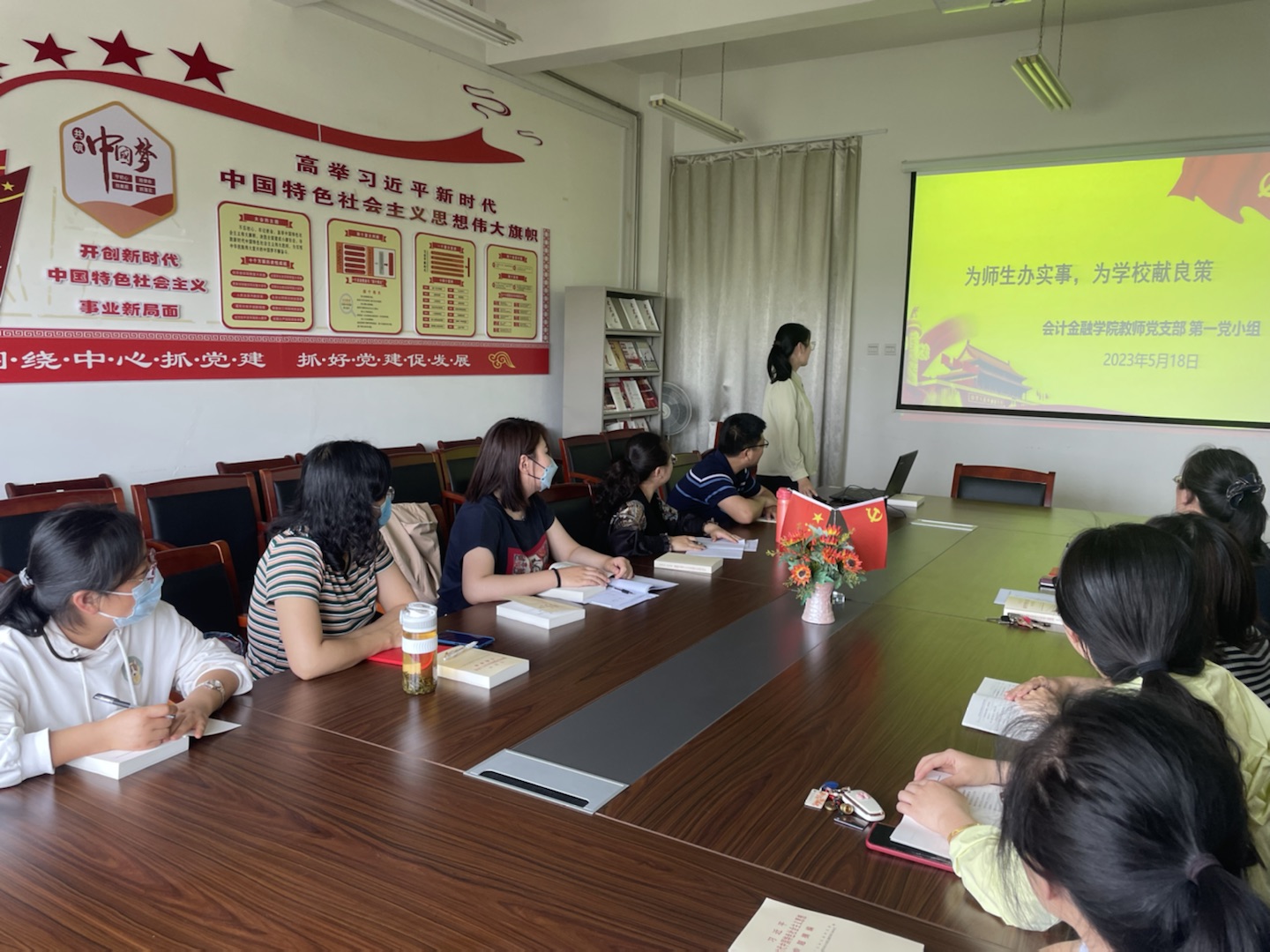 本站讯 为扎实推进学习贯彻习近平新时代中国特色社会主义思想主题教育,5月18日,会计金融学院教师党支部组织党员教师开展“我为师生办实事,为学校献良策”活动。