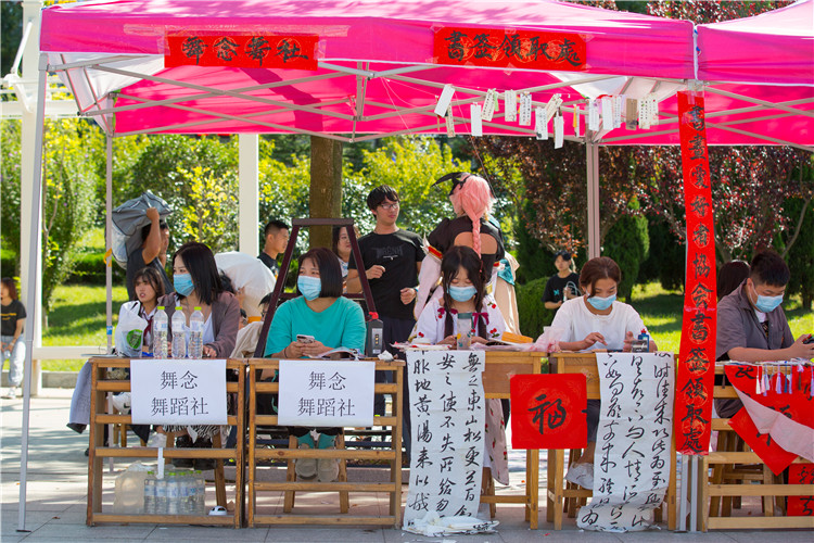 迎新现场,各个系部开展各类迎新活动,会计系设置党员服务岗志愿服务,一对一专业咨询,彰显党员服务意识,发挥党员先锋作用,党员教师和入党积极分子志愿者们注重迎新细节,维持整个迎新现场的秩序,与新生学子及家长们攀谈,耐心的对新生报到中的疑问进行讲解。精心设计签字板,使新生增加了归属感;书画爱好者协会将新生对未来大学生活的期待制作成书签,时刻勉励自己;舞蹈社团、动漫社团更是载歌载舞热烈迎接新生。图书馆工作人员和志愿者为新生发放了《图书馆那些事儿》入馆手册,并对新生和家长提出的问题进行耐心细致的解答,方便新生更早地了解图书馆、熟悉图书馆、体验图书馆、利用图书馆。系部各式各样的迎新活动使得新生眼前一亮,更多了一份对未来大学生活的憧憬。