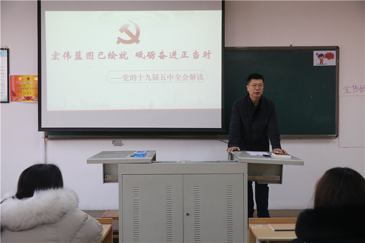 本站讯 根据学校党委统一部署,12月4日和16日,我校党委书记耿建敏到会计系两个班级就十九届五中全会精神开展主题为“宏伟蓝图已绘就、奋进正当时”的宣讲。