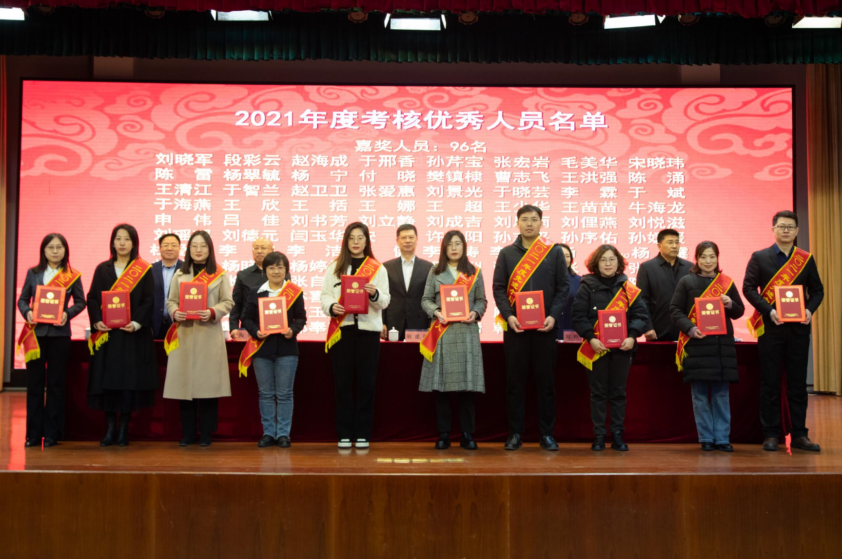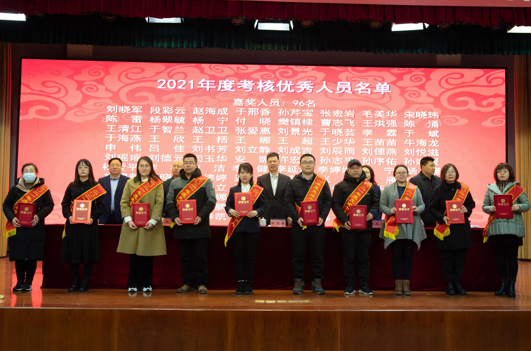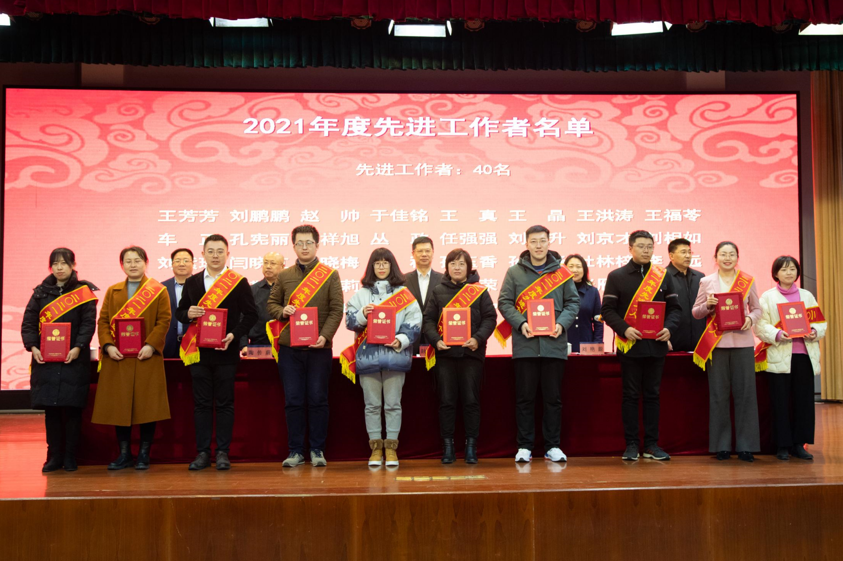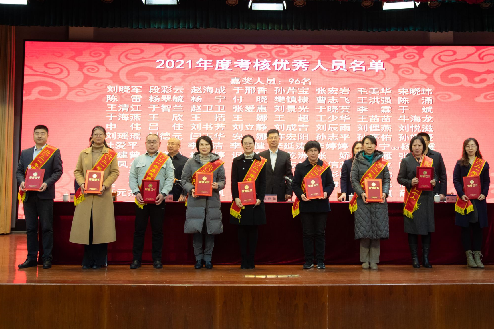 本站讯 3月1日下午,我校组织召开2022年工作动员大会。会议深入贯彻习近平新时代中国特色社会主义思想,贯彻落实全省2022年工作动员大会精神,认真总结2021年学校工作,对过去一年为学校高质量发展做出突出贡献的集体和个人进行了表彰,并全面部署2022年学校改革发展的各项任务。学校领导班子成员出席会议,党委书记耿建敏作大会讲话,党委副书记刘艳蔚主持会议。