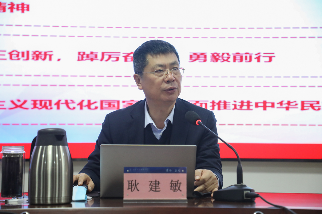 耿建敏在宣讲时表示,党的二十大是在全党全国各族人民迈上全面建设社会主义现代化国家新征程、向第二个百年奋斗目标进军的关键时刻召开的一次十分重要的大会,是一次高举旗帜、凝聚力量、团结奋进的大会。全校上下要把学习宣传贯彻党的二十大精神作为当前和今后一个时期的首要政治任务,要以“学、悟、讲、用”为重点,做到入脑入心学、深思细研悟、分层分级讲、积极主动用,以高度的使命感和责任感,把思想和行动统一到党的二十大精神上来。