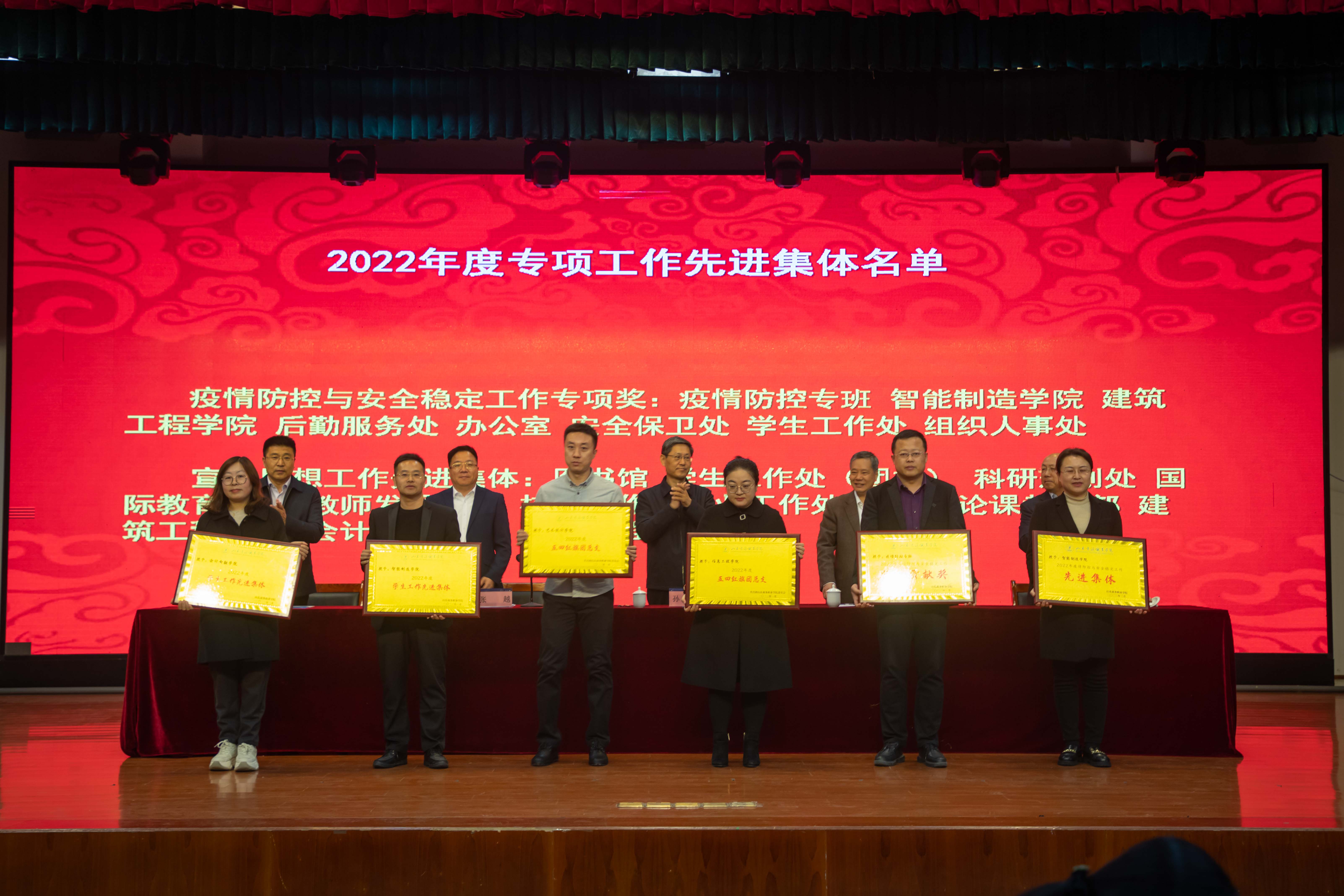 党委副书记、校长王发明向受到表彰的先进集体和个人表示热烈祝贺。在总结过去一年奋斗历程的基础上,王发明就做好2023年重点工作强调了四点意见:一是要对标对表,踔厉奋发,稳步实现办学质量考核保档进位;二是要踏实苦干,奋勇争先,持续推进产教融合、科教融汇;三是要规范管理,挖潜增效,全面提升学校财务保障能力;四是要守牢底线、不越红线,全力做好学校各领域安全工作。王发明要求,要扎实推进党的二十大精神在学校落地见效,全面实现全年发展目标。