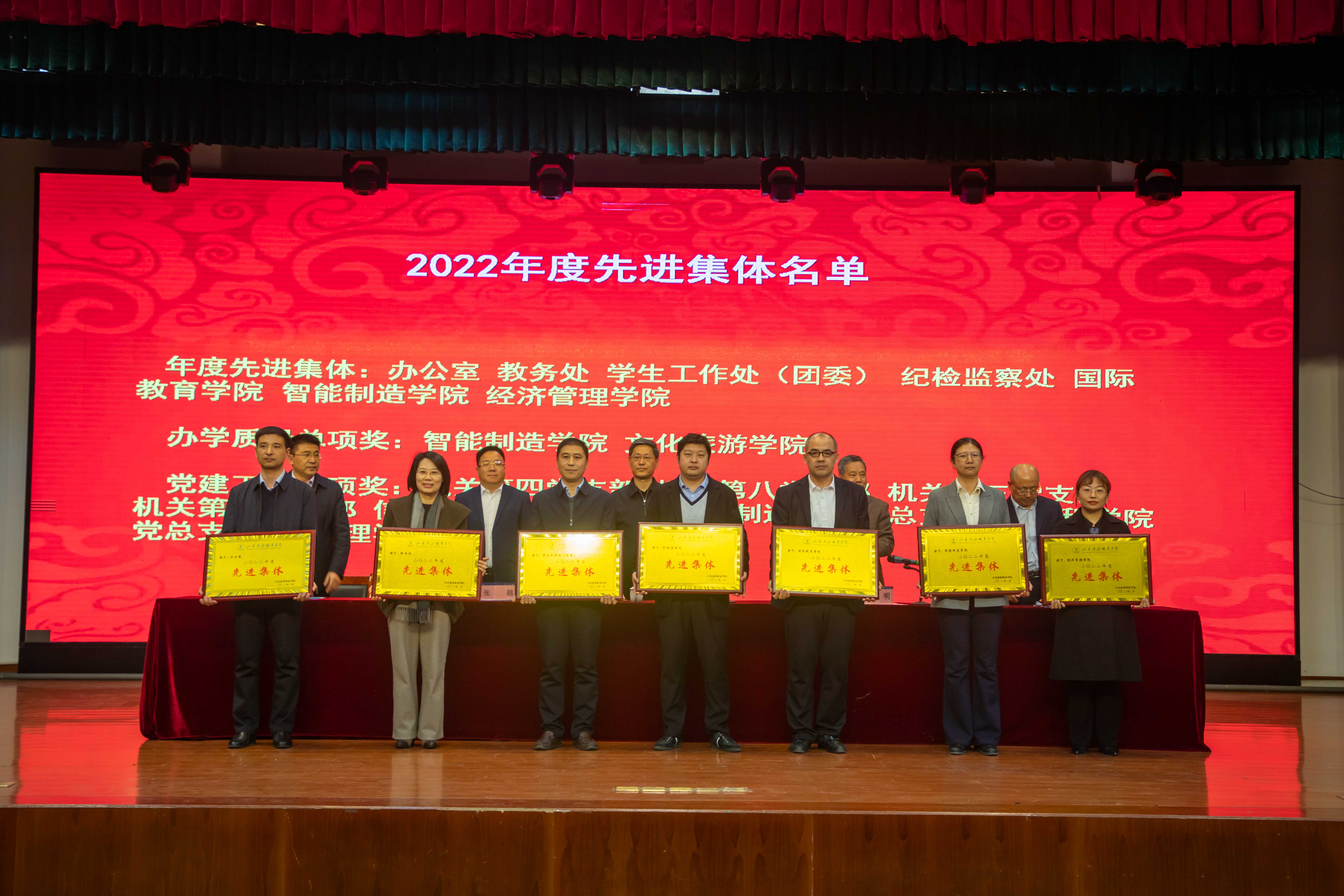 党委书记孙云茂发表讲话。他指出,过去的一年,广大师生员工砥砺前行、奋勇拼搏,在“双高”建设征程上迈出了坚实的步伐。成绩来之不易。今年是学习贯彻落实党的二十大精神开局之年,是实施“十四五”发展规划承上启下的关键一年,也是学校立足新时代、奋勇新征程、全力推进学校事业高质量发展的重要一年。为进一步推进学校各项事业高质量发展,他强调,全校上下要聚焦全力冲击“双高”建设的近期目标和职教本科的中期目标,砥砺前行、奋勇拼搏;要对标对表、争创一流,全面加快赶超进位步伐;要加压奋进、善做善成,持续推进事业改革发展;要严守底线、心存敬畏,共同塑造良好发展环境。孙云茂号召全体教职工要以攻坚的决心、顽强的意志、踏实的脚印、昂扬的姿态,以舍我其谁的责任担当,奋力谱写学校高质量发展的崭新篇章。