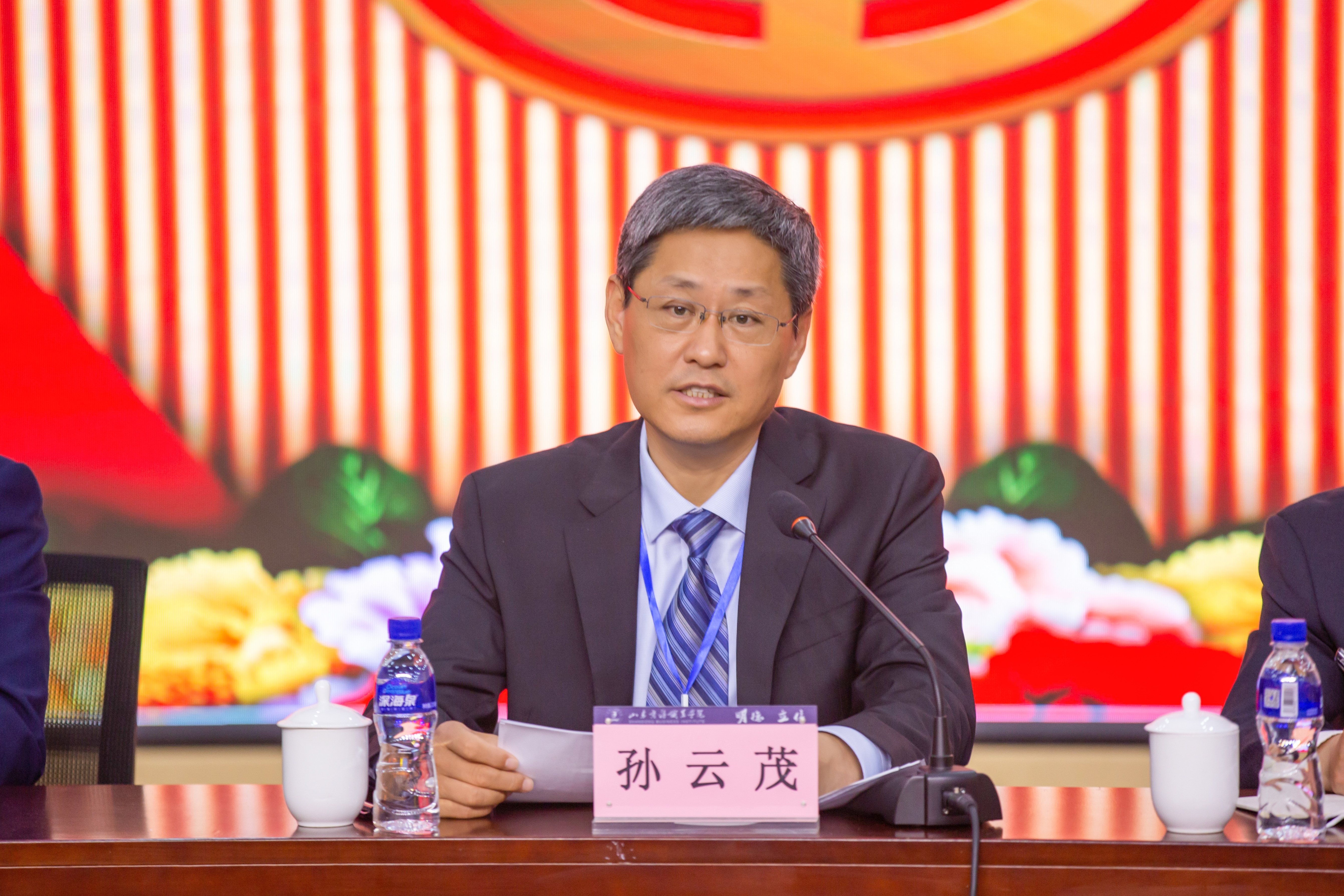 本站讯 5月16日下午,我校第五届教职工代表大会暨工会会员代表大会第三次会议在学校党性教育基地召开。校领导孙云茂、王发明、张越、陶传蔚、张云生出席会议。109名正式代表、59名列席代表参加会议。会议由党委副书记、纪委书记张越主持。