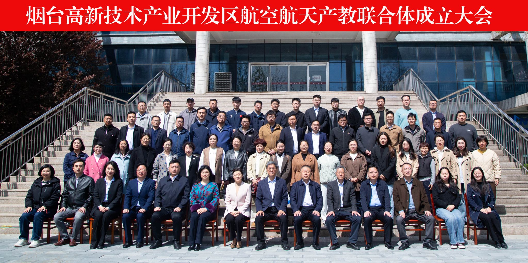 本站讯 4月22日上午,烟台高新技术产业开发区航空航天产教联合体成立大会在我校举行。烟台市教育局党组成员、副局长张丽,高新区工委委员、管委副主任于红绫,中国致公党山东省委文化委员会副主任、中国国际商会山东副会长于瑞舟,山东华宇航天空间技术有限公司总经理王磊,学校党委书记孙云茂,党委副书记、校长王发明,党委副书记张越,校企合作与就业工作处处长孙琳,智能制造学院党总支书记时登华,智能制造学院院长魏彦波,高新区教育体育局、航空航天及电子信息产业招商中心主要负责人等政企校代表300余人出席会议,围绕 “产教融合、协同育人”这一主题共商发展大计。